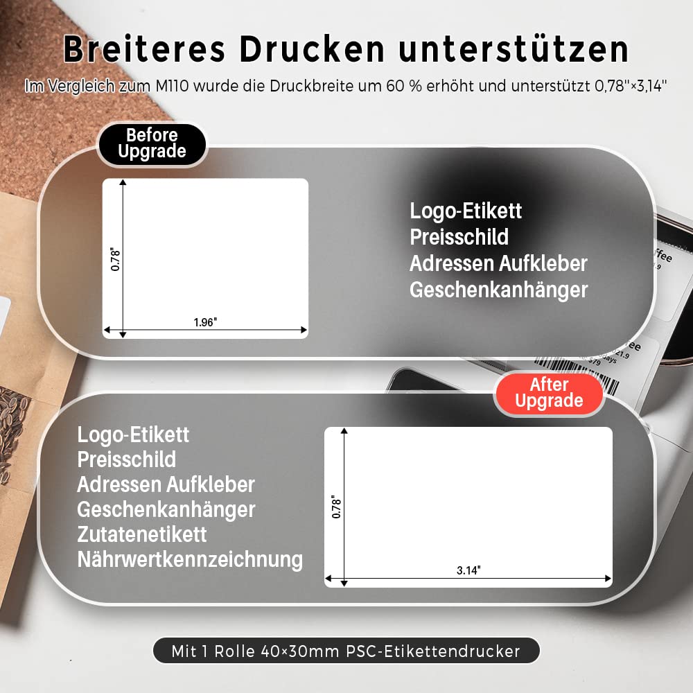 "Upgraded smart label printer - M220 print size is 20-75mm for clothing, crafts, retail, jewelry, etc. Labeling address, barcode, shipping, price, date, ingredients, logos for product labels. It is the updated version of the M120 series printer and supports all M110 M120 labels."
