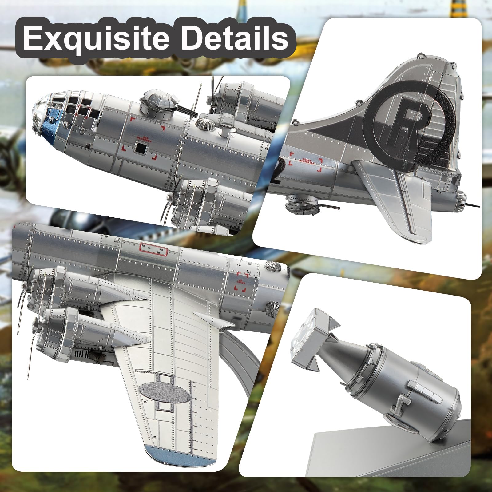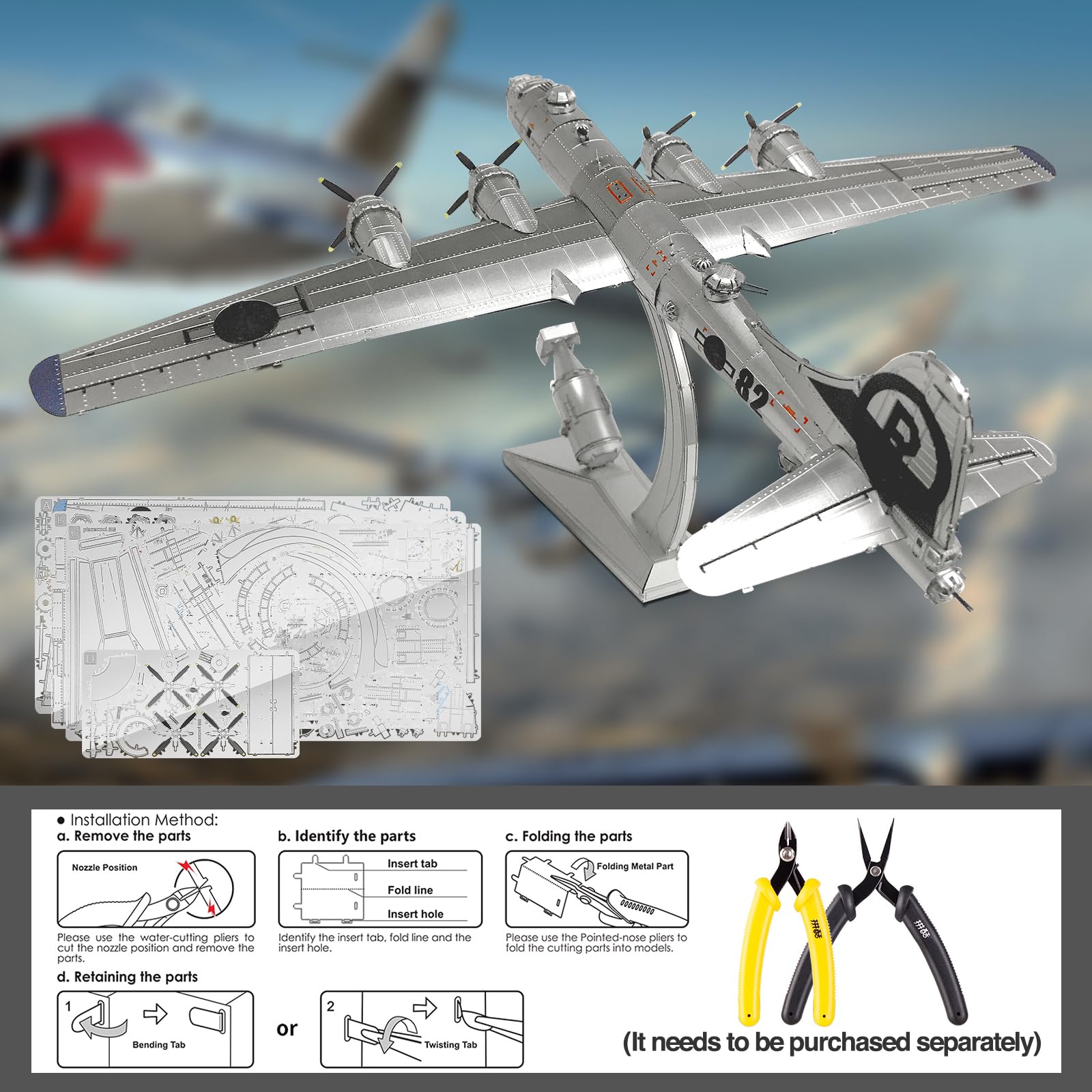 Piececool 3D Metal puzzle aircraft model B-29 Bomber Superfortress, for 340 stainless steel, full metal, 1:1 restore, birthday gift, adult model kit, 150 pieces.