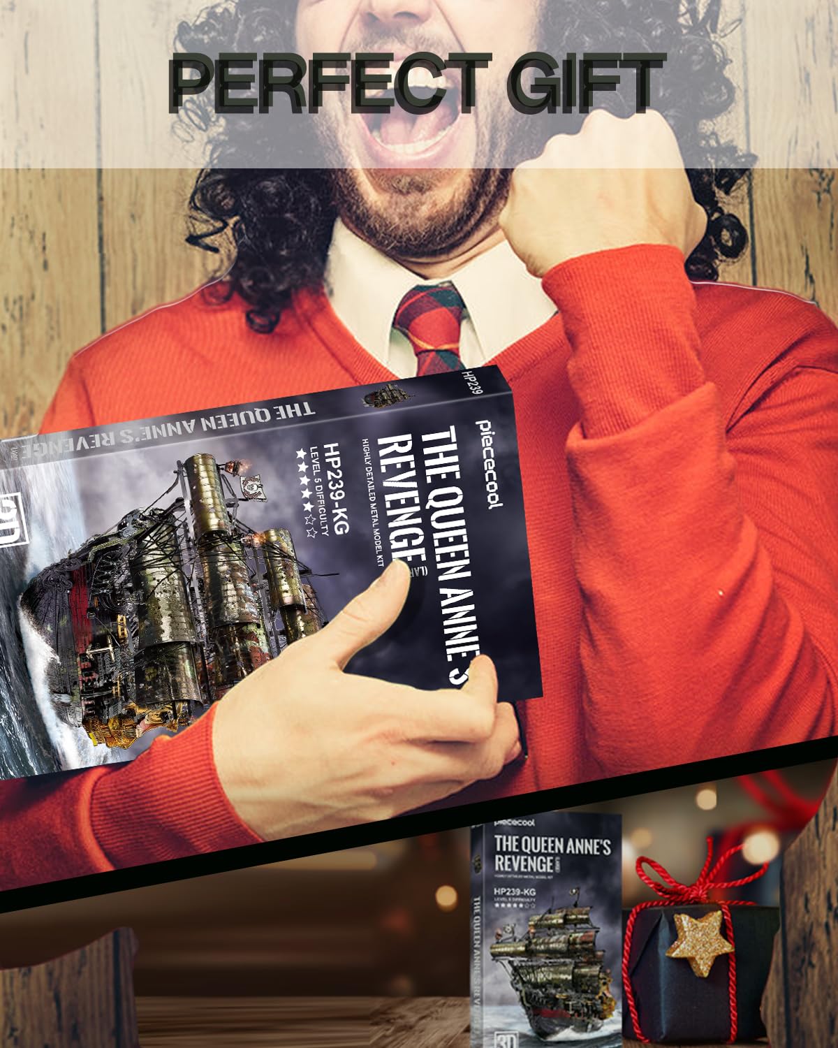 Piececool 3D Metal Puzzle Pirate Ship Queen Anne's Revenge, 3D Metal Puzzle Sailboat Ship Set, Model Ship for 340 stainless steel, Birthday Gift, Model Building Kit for Adults, 439 Pieces