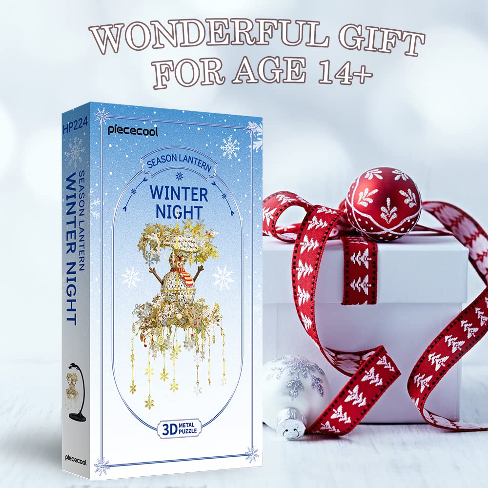 Piececool 3D Puzzle Metal Chandelier Snowman, 3D Metal Puzzle Winter Scene for Masquerade Parties, 340 Stainless Steel, Entire Metal, Birthday Gift, Adult Model Building Kit, 209 Pieces