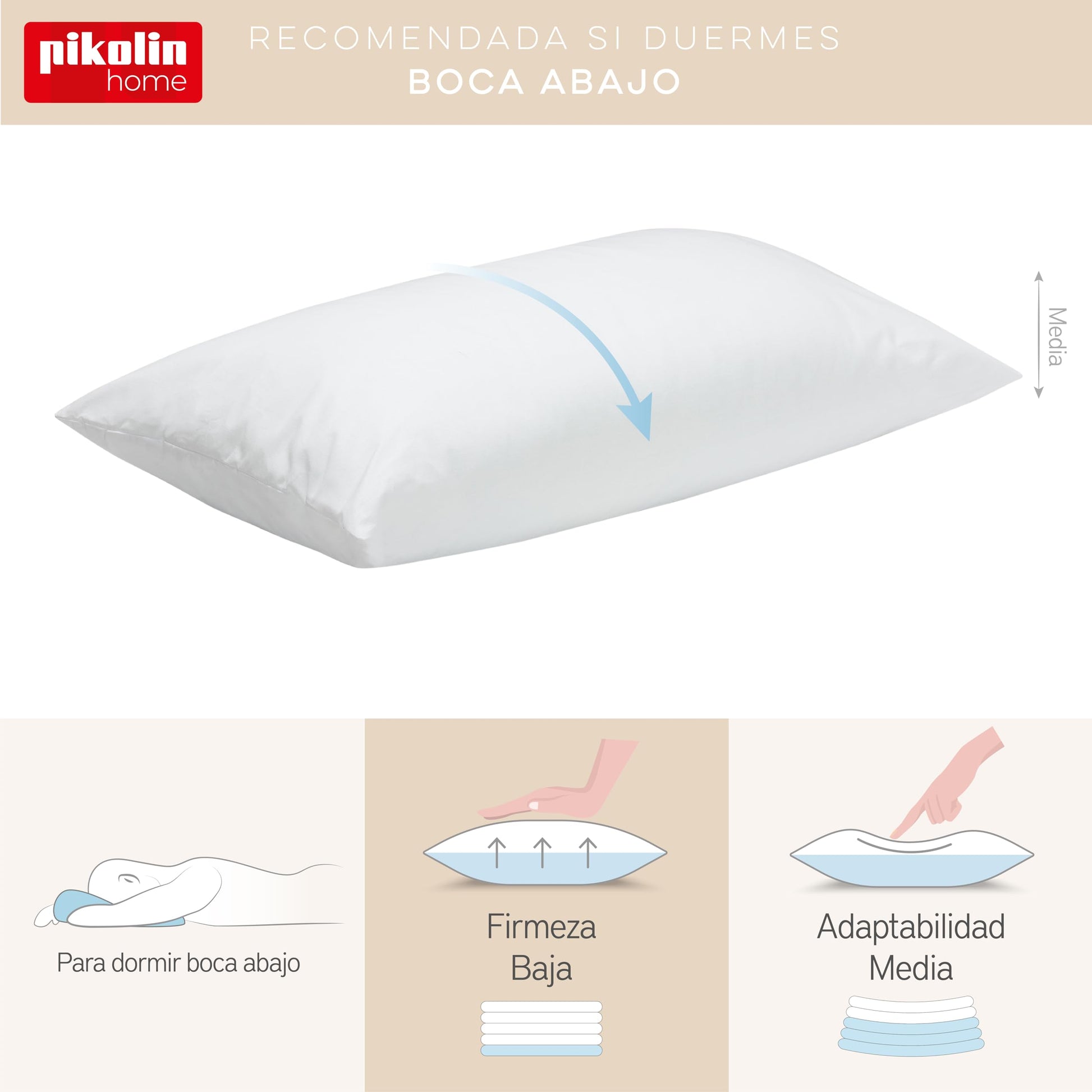 Pikolin Home anti-dust mite fiber pillow, preventing allergy symptoms, suitable for side or back sleeping with medium firmness.