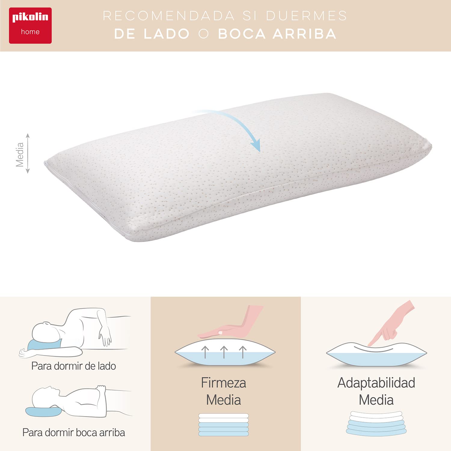 ["Bamboo: Has natural antimicrobial properties. Higher moisture absorption than cotton","Recommended for all who sleep on their back or side","Maximum ergonomics for neck and head","Pressure relief during resting, allowing for a deep sleep","With zipper. Cover machine washable","Optimal ventilation. Reduces temperature during sleep"]