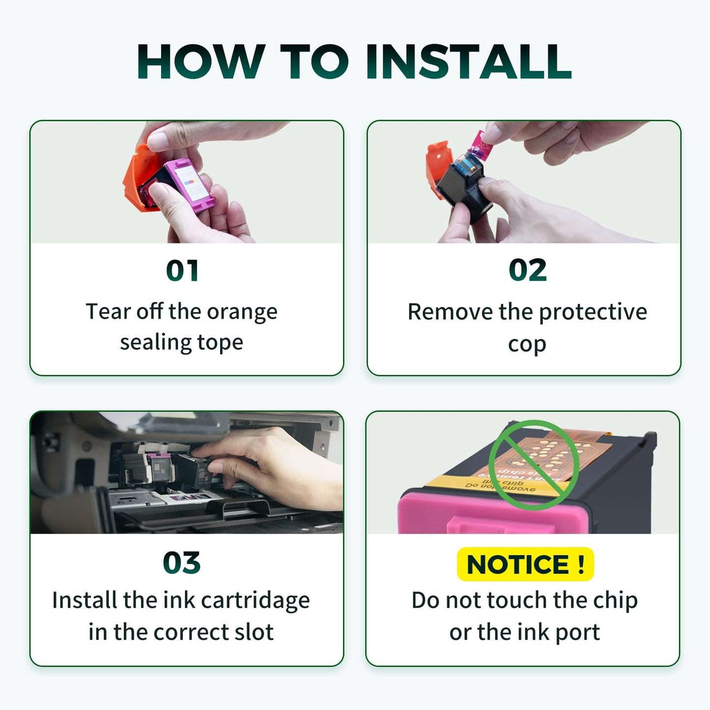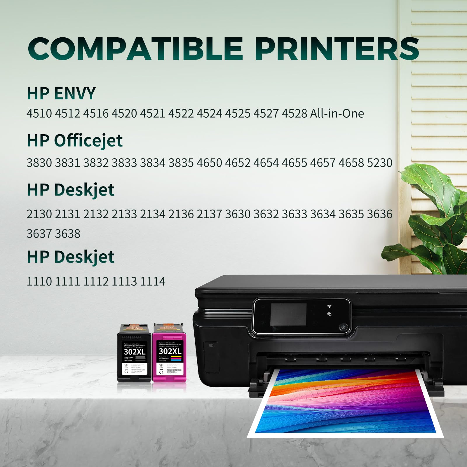 【Set includes】: 2 Replacement Compatible for HP 302XL cartridges, 1x 302XL Black, 1x 302XL Color,