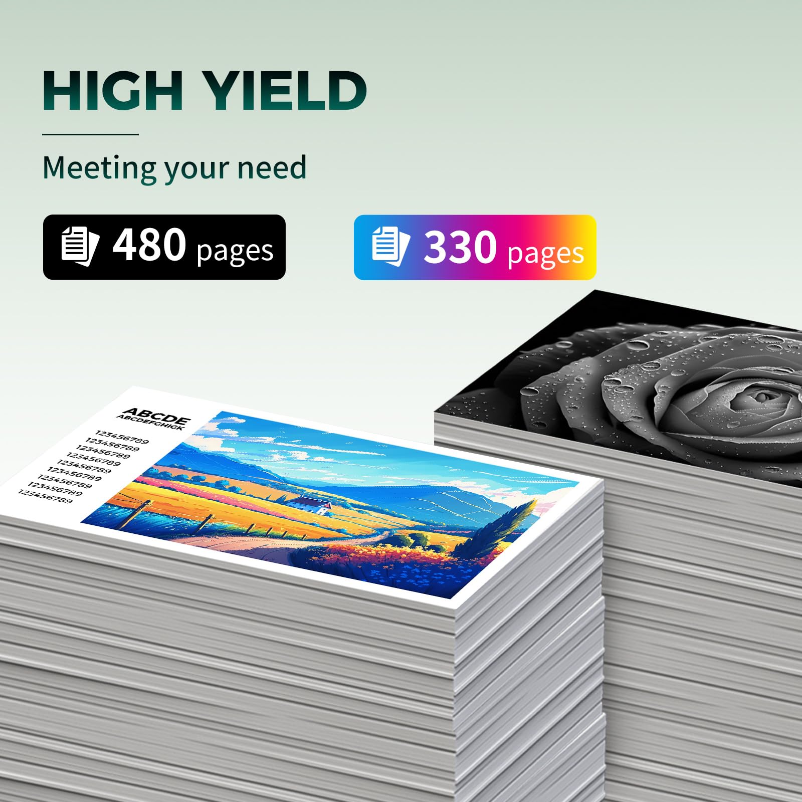 【Page Yield】: 480 pages for 302XL Black, 330 pages for 302XL Color (5% coverage of A4 printed pages),