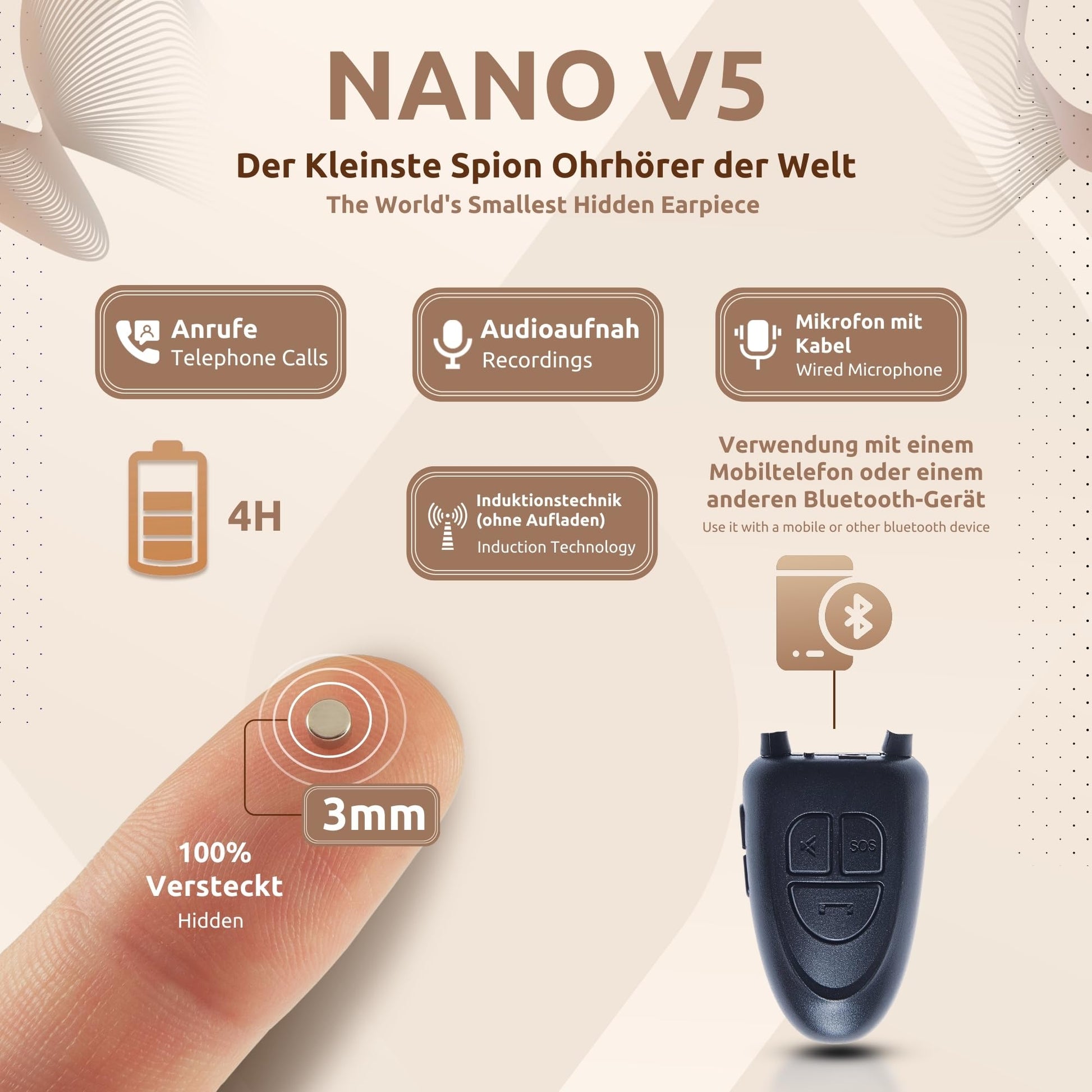 PingaOculto Spy Headset Bluetooth for Exam Mini Nano Invisible Headphones for Phone with Microphone Wire and Adhesive Strips - Invisible Earphones Wireless Headset Cheater (Spy Headset Nano V5)