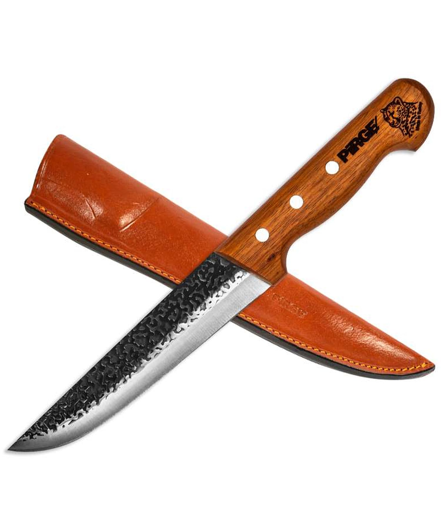 Pirge Elite Hand-Forged Butcher Knife with Leather Sheath 16.5 cm - Butcher Knife - Boning Knife - Exceptional Sharpness Butcher Knife - Stainless Steel Kitchen Knife - Natural Wood Handle Design