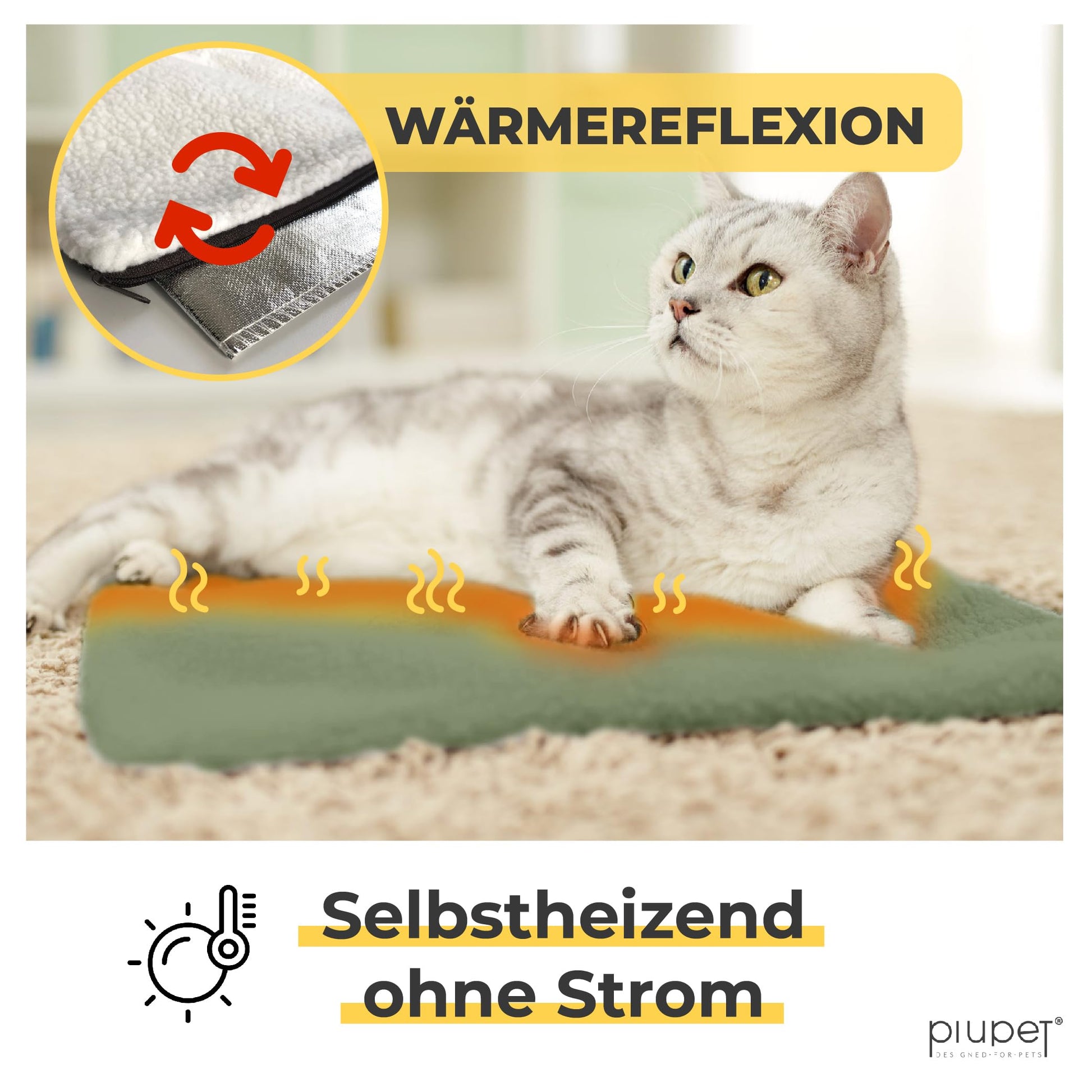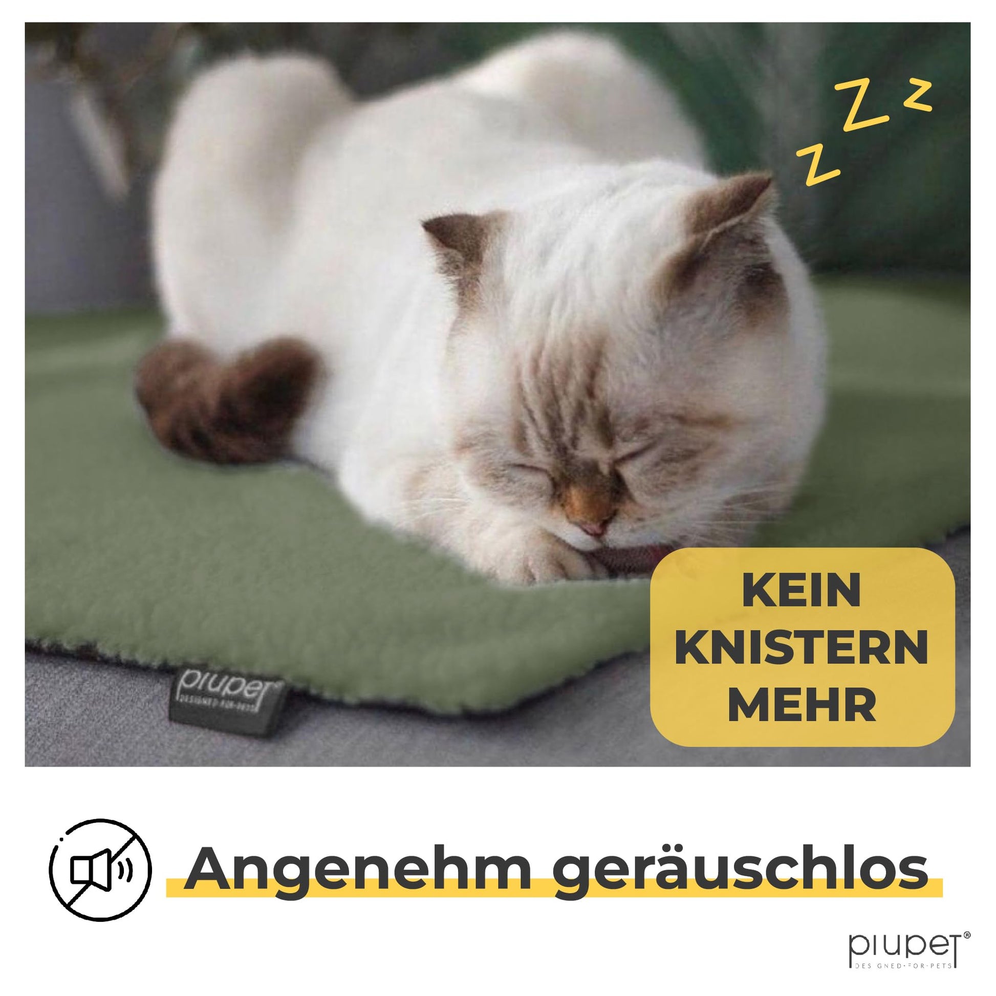 ["SPECIAL COMFORT EXPERIENCE - The PiuPet Cat Blanket is an ideal cat accessory indoor that stores and effectively returns the body heat of your cat or dog. The warmth of the self-warming cat blanket provides pure relaxation for your pet and is ideal for outdoor cats & older pets. The sofa cat blanket can be used as a heated cat bed or a cuddle blanket for cats. This high-quality cat blanket is an essential piece of cat accessory indoor.","OPTIMAL COST SAVINGS & ENVIRONMENTAL FRIENDLINESS - Since no external power supply is required to use the cat blanket / the cat heating pad, it is ideal for use in the car or for smaller pets like puppies, rabbits, and guinea pigs. Perfect for use as a pet heating blanket! The self-warming cat blanket provides environmentally friendly comfort. These versatile cat blankets are a must-have for every cat lover.","SAFETY & MULTIFUNCTIONALITY - The self-warming cat blanket poses no danger to your cat / dog due to bitten power cables or short-circuit reactions, as the cat warming mat is a self-warming cat blanket. The PIUPET self-heating cat blanket can also be used outside in sub-zero temperatures or on tiles. This small cat blanket offers safety and comfort. Discover our selection of cat blankets for every occasion.","TIME-SAVING & PET-FRIENDLY MATERIAL - The high-quality upper material of the cat blanket can be washed at 30°. The cuddly upper material of the cat heating blanket is extremely pet-friendly and provides your pet with a fluffy and cozy environment. The warmth blanket for cats remains cuddly soft even after washing. The self-heating cat blanket is practical and easy to care for. Get your cat blanket now for a cozy home.","IDEAL SIZE & PRACTICAL USE - The self-heating cat warming blanket has the ideal size of 45x60cm for every cat breed. The cat heating blanket for animals/self-heating blanket can also be easily stored. Now put the cat bed in your shopping cart! The small cat blanket fits perfectly in any cat bed. Explore our selection of cat blankets for comfort and warmth."]