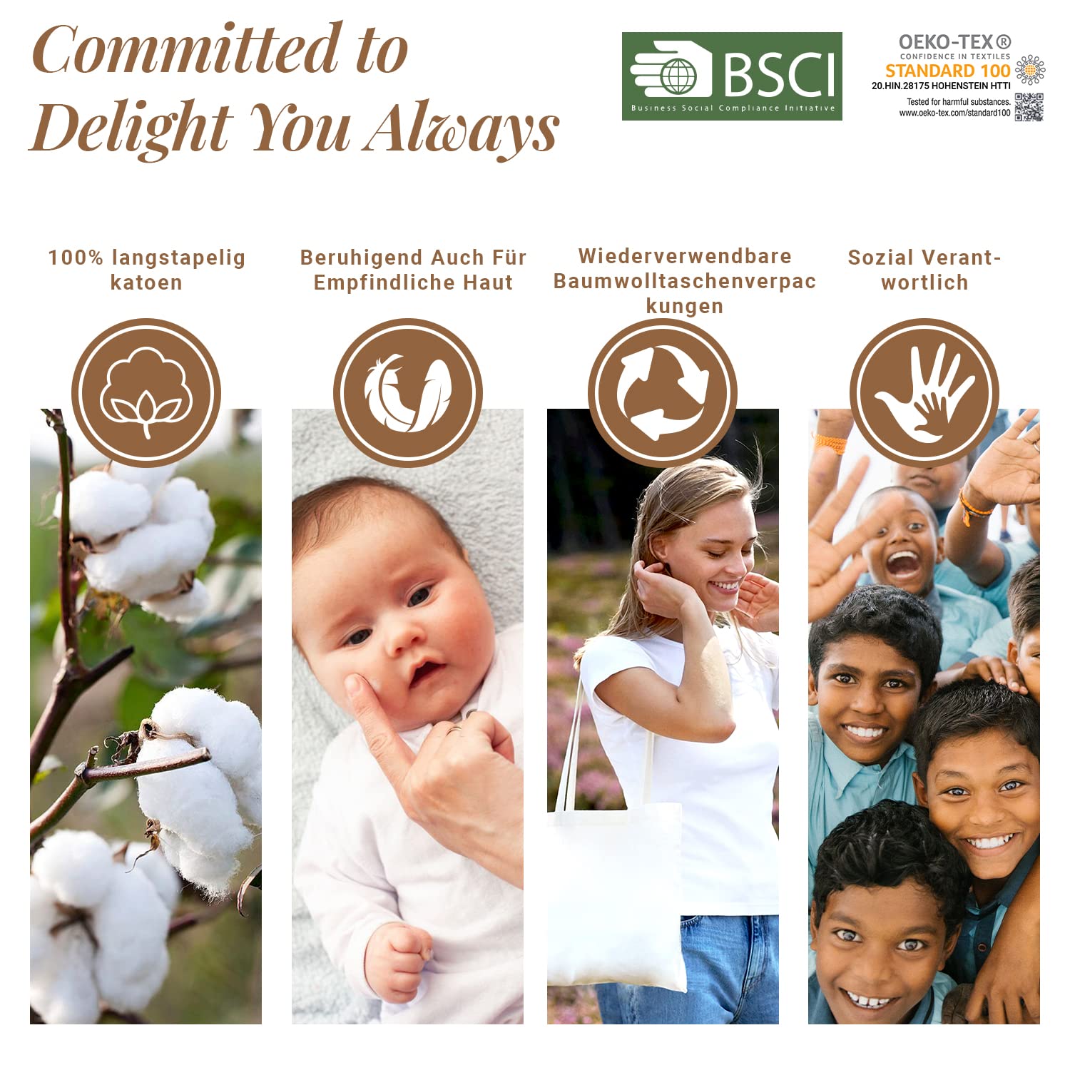 "Sustainable and Responsible: This cotton pillowcase set complies with BSCI standards, is socially responsible and environmentally friendly. The recycled packaging may have an initial odor that disappears after the first wash in warm water. With colorfast colors, it is machine washable on a gentle cycle and can be dried at low temperature in the dryer. The use of bleach may affect the colors.",