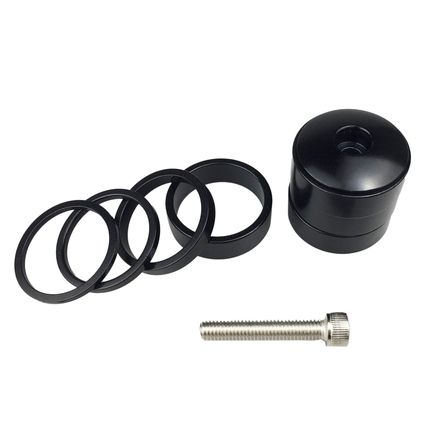 ["Used for 28.6 mm front fork.","Material: high-quality aluminum alloy, corrosion-resistant and lightweight, only about 52 g (8 pieces)","Anodized in black, colorfast surface, ultra-precise diamond blade, machine-cut, suitable for all road bikes","Various sizes for adjusting the suitable height, small size of the spacer headset allows for more precise height adjustment.","Package includes: 1 x 2 mm, 1 x 3 mm, 1 x 5 mm, 4 x 10 mm, 1 x top cap (8 pieces)"]