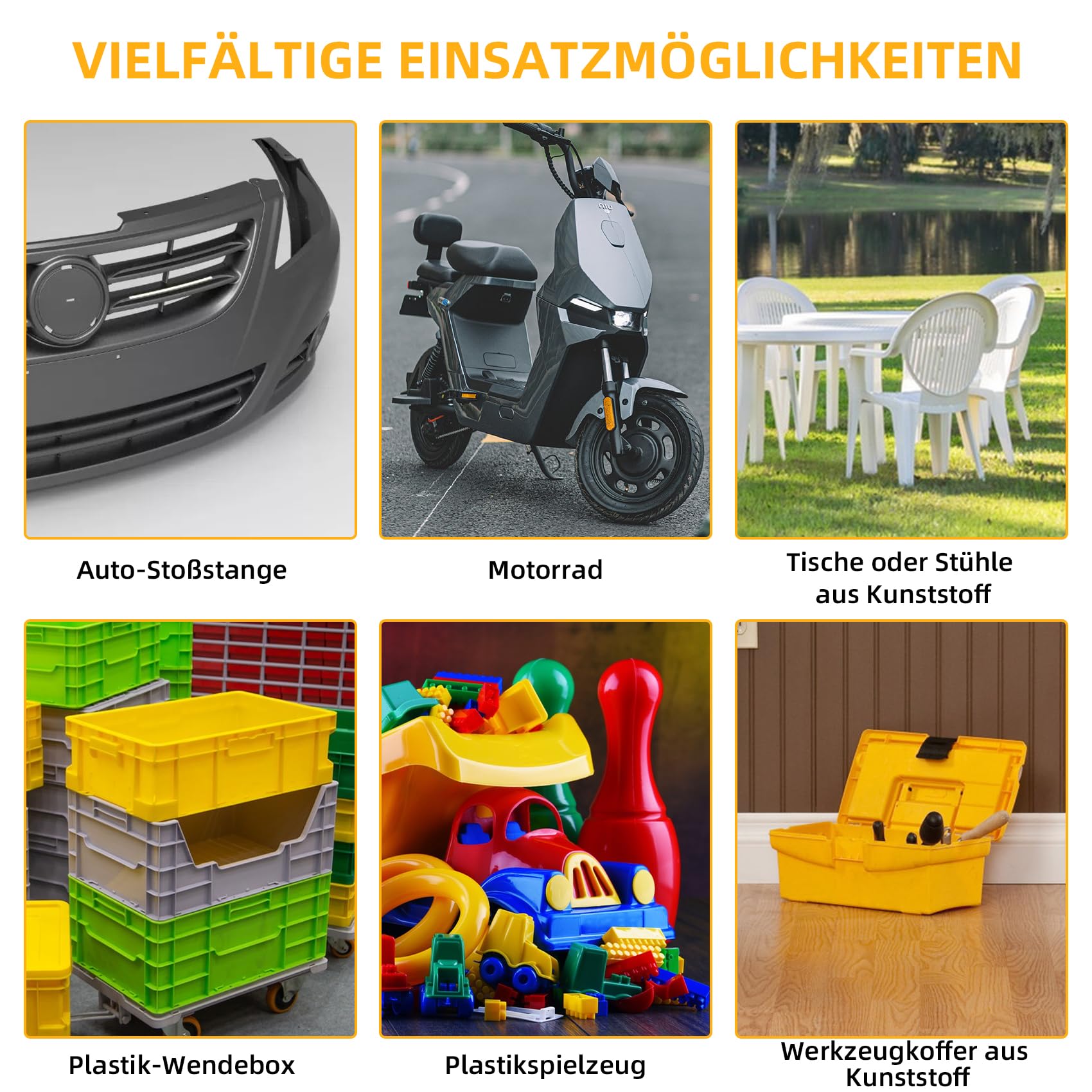 ["THE MOST COMPLETE PLASTIC REPAIR KIT: 150w Welding Nail Gun*1+Pliers*1+Storage Box*1+Instruction*1+Welding Nail*800+Smoothing Head*2+Plastic Rod*10+Mesh Fabric*2+Aluminum Foil*2+Pliers*1+Cutter*1.","🔧WIDE RANGE OF APPLICATIONS: suitable for all kinds of plastic items, such as car bumpers, toys, recycling bins, dashboards, etc. Can be used to firmly and permanently repair broken and cracked parts.","🔨EASY TO USE: It only takes a few seconds to learn how to use the welding gun. All you need to do is clean the surface, choose the right tip, heat the torch, then bond and repair.","🩹MULTIFUNCTIONAL SOLDERING TOOL: 6 types (total of 800 pieces) for your different needs: 0.6/0.8 mm linear wave staples, 0.6/0.8 mm large wave soldering staples, 0.8 mm V-shaped soldering staples, 0.6 mm M-shaped soldering staples.","✅PRACTICAL TOOLS: Welding gun with 3 seconds of heat generation, saving time; smoother requires 3-5 minutes for preheating, smoke is normal during preheating. Plastic storage box, easy to store and carry."]