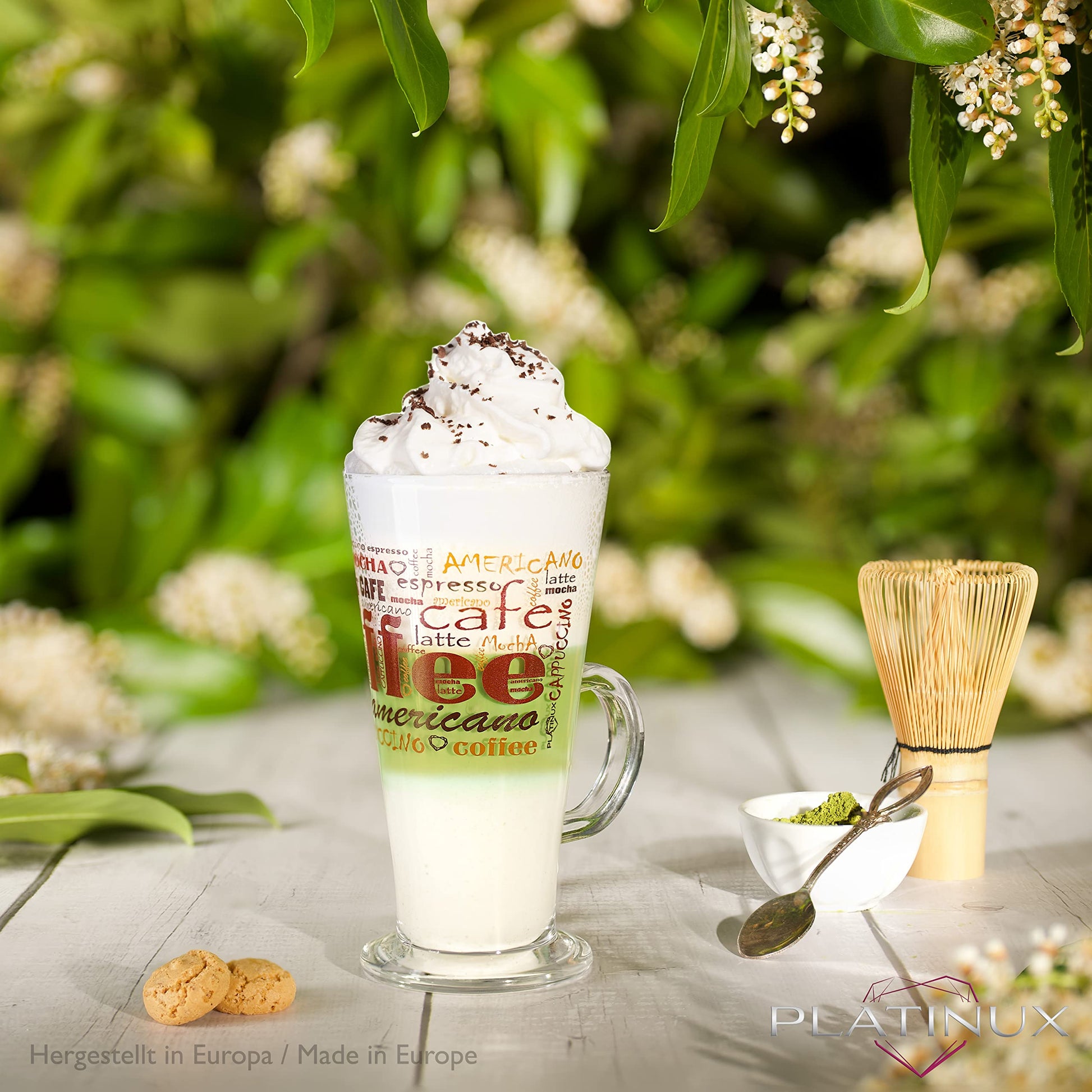 PLATINUX Coffee Glasses with design max. 280ml Set of 6 made of glass Latte Macchiato Glasses with handle Cappuccino Glasses