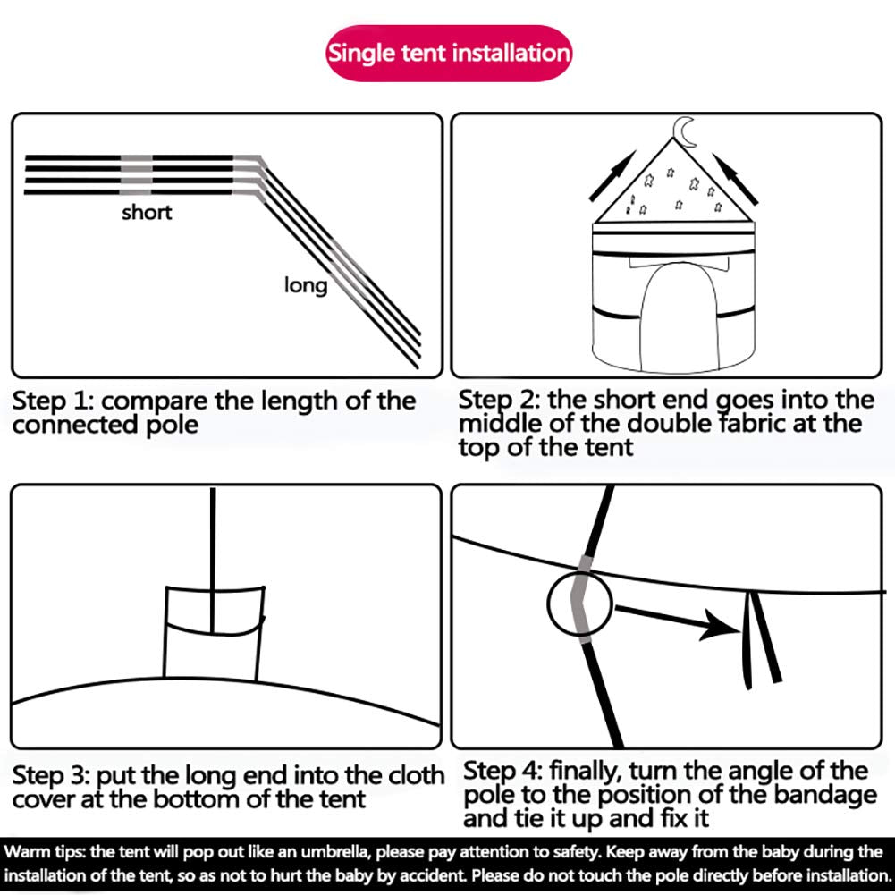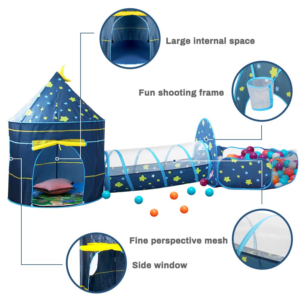 ["3 in 1 Kids Play Tent Set The play tent and tunnel set includes 1 house tent, 1 ball pool, and 1 tunnel. The tents, tunnel, and ball pool can be used together or as separate items, creating a ball pit playground, running tunnel, mazes, or magical caves. (Balls not included) Size: House Tent: 100 cm x 135 cm (39.37 inches x 53.14 inches), Ball Pool: 120 cm x 79 cm (47.24 inches x 31.10 inches), Tunnel: 115 cm x 47 cm (45.27 inches x 18.50 inches). Breathable and Safe The kids play tent features breathable mesh design in the tunnel, convenient for parents to watch over their children, practical for parent-child interaction, and keeps the baby cool while playing and also mosquito resistant when used outdoors. The room tent is made of polyester-nylon material to ensure children's safety. All materials are non-toxic and non-irritating. Easy to clean with a damp cloth. A Private Space for Kids Our playhouse is a dreamy room tent where children can have their own private space to chat, read, and relax. The tent and long tunnel provide many play options. Children will be engaged playing lots of games. Or acting and role-playing with friends in a tent. Easy Installation and Storage The cute tent is easy to set up and fold in minutes, high-quality tubes and connectors without sharpness or roughness. Children can assemble themselves under the guidance of parents. The tent construction can improve relationships and enhance the child's practical skills. It comes with a storage bag. The house tent can be stored when not in use. You can take it anywhere. Widely Used Application Kids play tent is light and portable. You can move it freely. Suitable for both indoor and outdoor, garden, camping, etc. This kids tent is a popular spot for children and great for toddlers aged 6 months and up. Great gift idea for birthdays, Christmas, or just as a surprise. The colorful design will surely be loved by children."]
