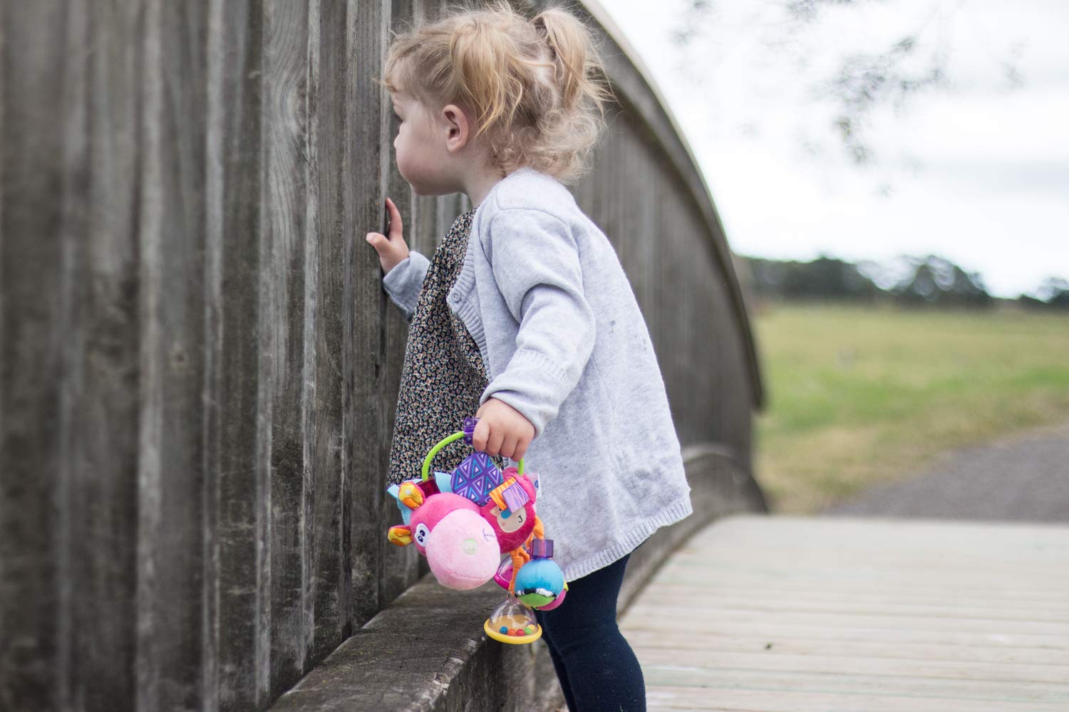 ["Colorful plush horse as educational toy for promoting gross and fine motor skills, Ideal for sensory training of sight, hearing, touch, Suitable from 3 months","Varied play fun: label tags and ring with sliding beads in different textures - Ring also ideal as a carrying handle","Numerous play possibilities: 4 clacking hooves, Integrated mirror, Crinkling and rattling hooves with bells and beads, Pouch with Velcro for exciting discoveries","High-quality material mix of polyester, ABS, PP and PET plastic, BPA-free, Not suitable for washing machine, Surface wipeable with damp cloth","Contents: 1x Playgro Toybox Horse Klipp Klapp, Dimensions: 19x14x9 cm, Material: Textile: 100% Polyester, Ring: PP beads, Rattle: ABS, Mirror: PET, Color: Pink/Multicolor, Item No.: 40143"]