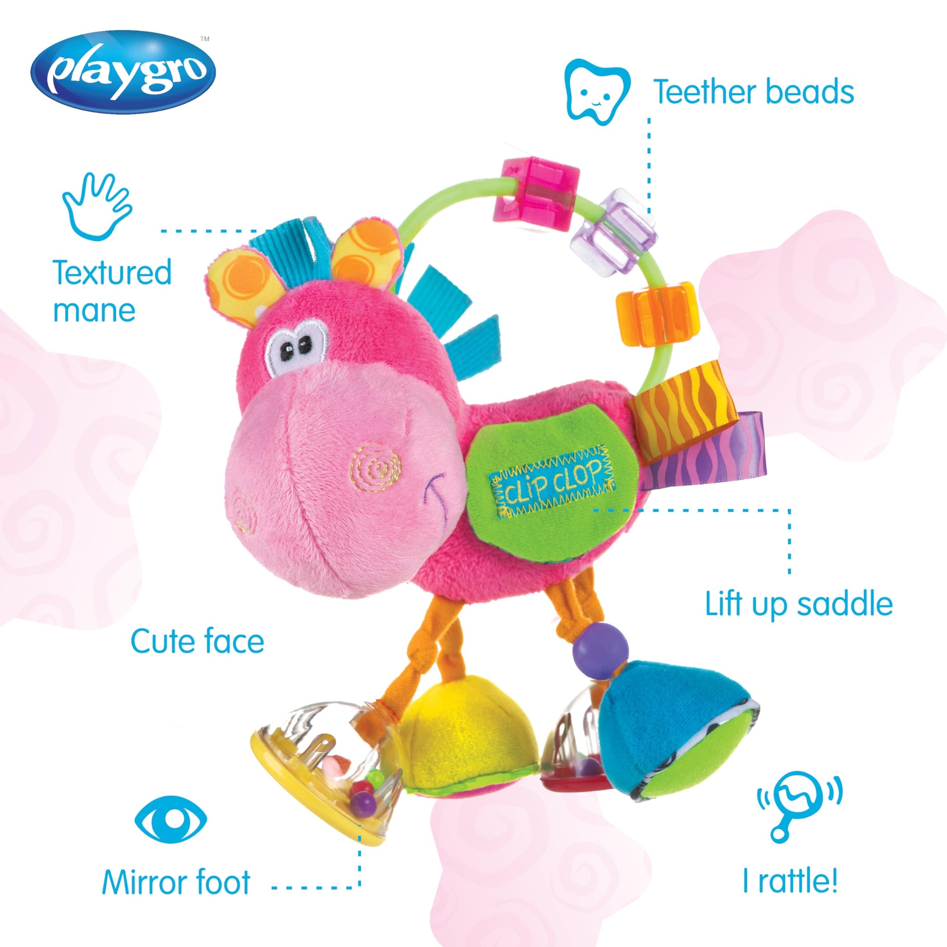 Playgro Horse Clip Clop pink - Baby toy - Motor skills - Baby sensory - Baby rattle - Baby motor skills - Kids toy - pink
