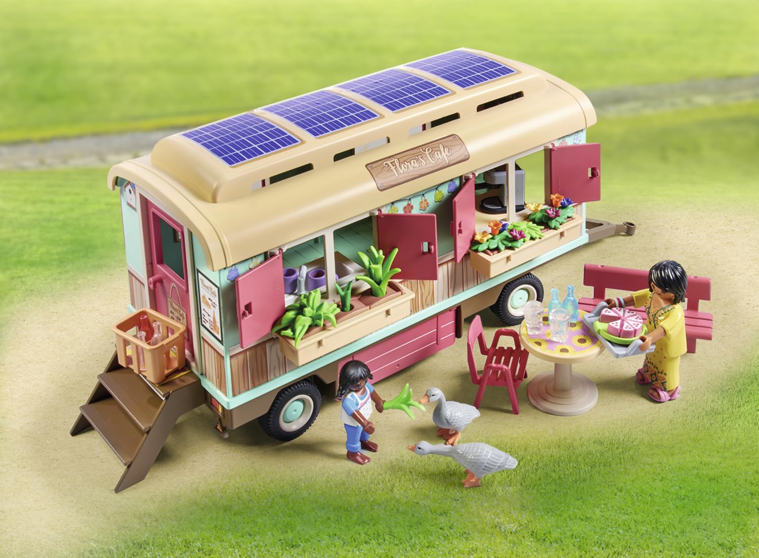 PLAYMOBIL Country 71441 Cozy Trailer Café, playful learning with lovingly designed trailer, detailed amenities, and a pond with geese, sustainable toy for children aged 4 and up.