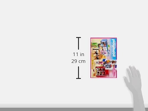 "Girls' fun: PLAYMOBIL Family Kitchen with furniture, 2 figures, and practical baking and cooking accessories for detailed playtime. Kitchenette with oven, dishwasher, refrigerator, dining area, and clever cooking utensils. Compatible with My Big Dollhouse (70205). Play figure set for kids aged 4 and up. Can be played with daily. Comes with instructions for assembly, high quality, and sturdy design. Easy to clean under running water without chemical substances. Includes: 1x PLAYMOBIL Dollhouse Family Kitchen, 129-piece play figure set with instructions: 1 kitchenette, 2 figures, 126 accessories. Material: BPA-free plastic. Dimensions: 38 x 19 x 29 cm, 70206"