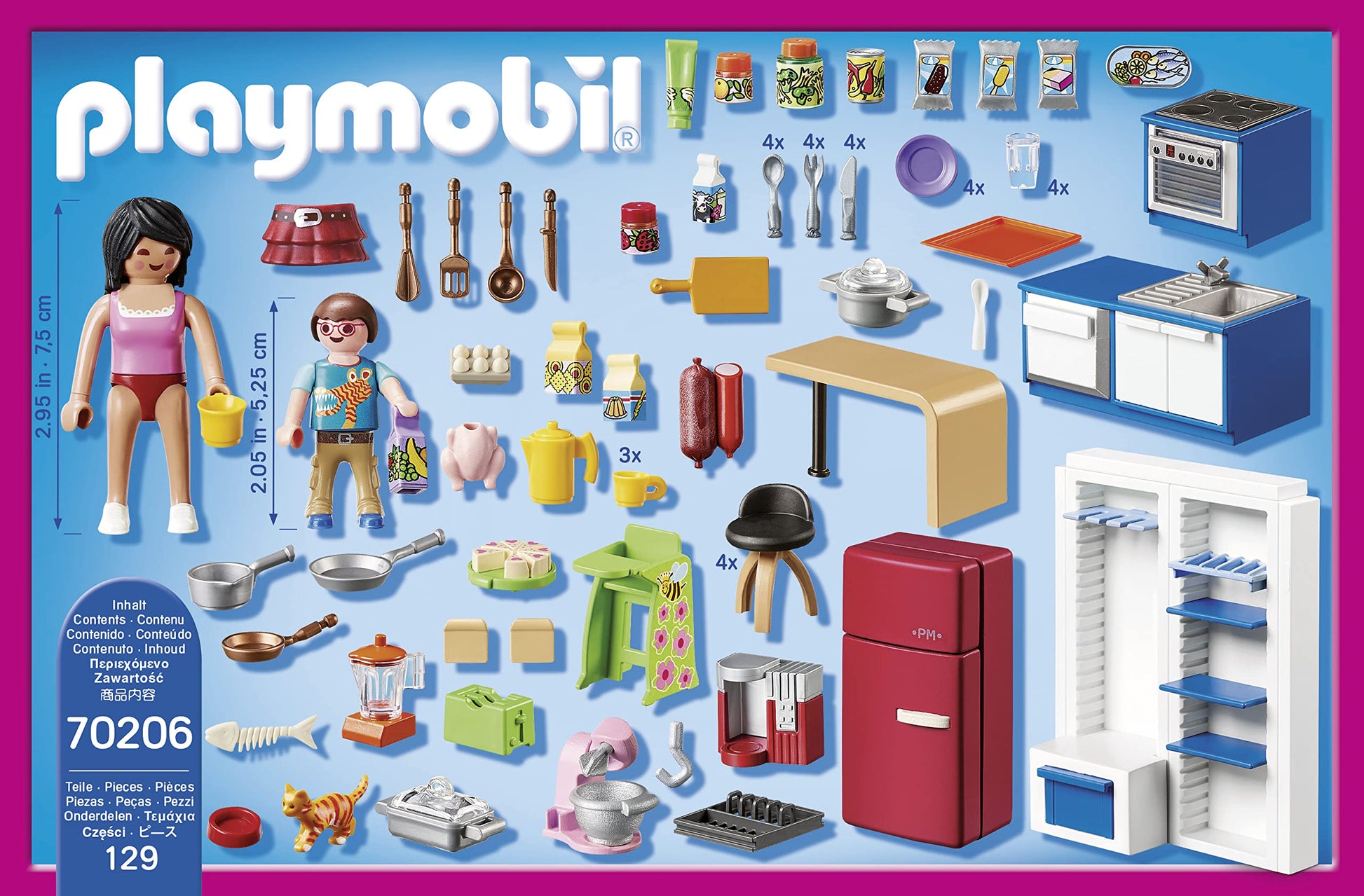 PLAYMOBIL Dollhouse 70206 Family Kitchen, with stove, dishwasher, refrigerator, dining area, and clever cooking utensils. For ages 4 and up.