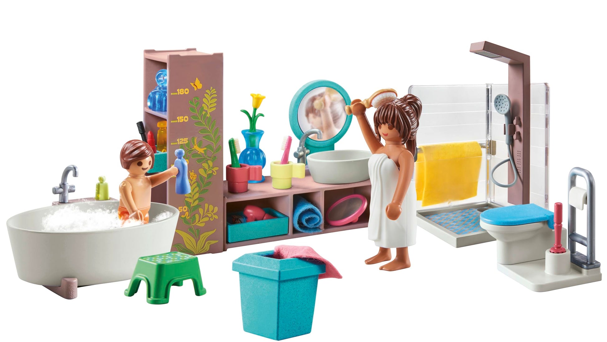 ["Everyday in the bathroom: With the PLAYMOBIL Bathroom Set, children can recreate realistic scenes - from relaxing moments in the freestanding bathtub and refreshing showers to private toilet moments",