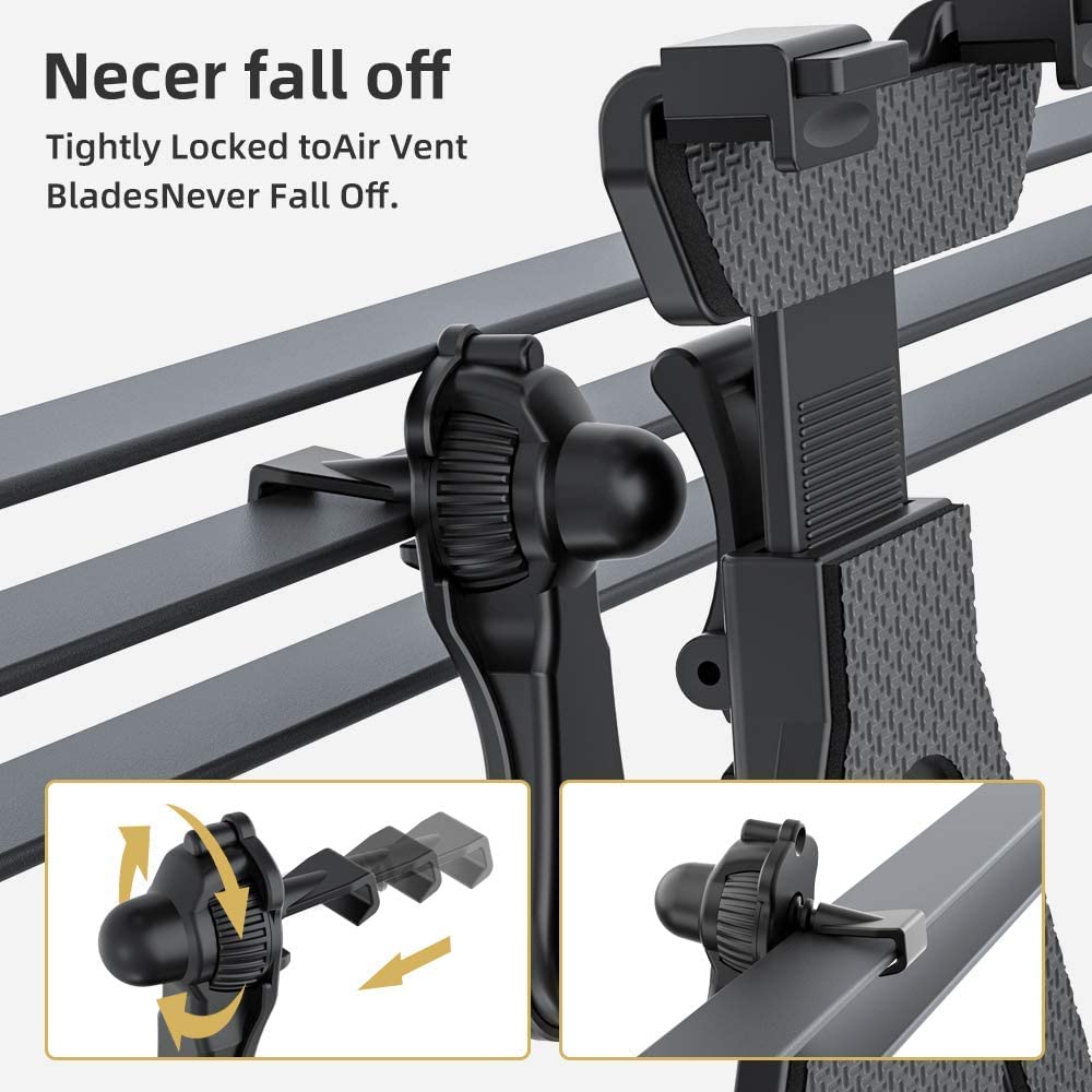 ["[3-in-1 Mounting System] Securely attach to dashboard*, windshield* or vent* (*accessories included). Adjustable base allows glare-free positioning without obstructing view for safe driving","[Fully flexible operation] 360° rotatable head + 190° tiltable telescopic arm (7.3-13 inches extendable) holds any tablet steady even on bumpy roads. Perfect for navigation, music control, or video calls","[Wide device compatibility] Fits all 6-13" tablets (up to 0.65" thickness): iPad Pro 12.9/Air 10.9/Mini 8.3, Samsung GalaxyTab S9/S8/S7, Fire HD, MatePad, even with thick protective cases","[Premium material mix] High-strength steel core + temperature-resistant TPU suction pad (up to 80°C) + non-slip gel coating. Note: Not suitable for leather surfaces/curved surfaces","[Complete set with service guarantee] 1x suction cup mount + 1x vent clip + 1x adhesive pad + instructions. For quality issues: Free replacement within 24h"]