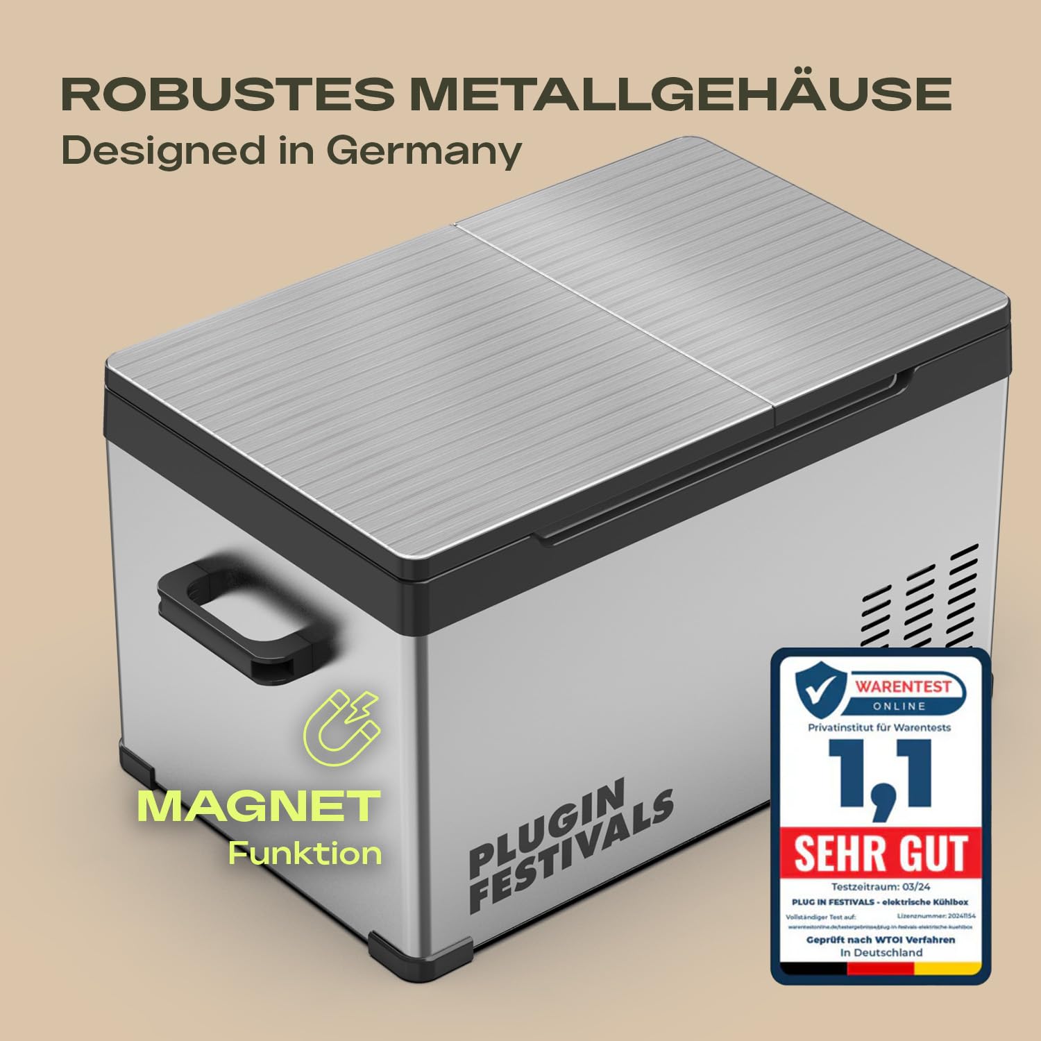 PLUG IN FESTIVALS electric cool box - 2 compartments compressor cool box 12v 230v - up to -20 degrees & app control - freezer box for car & camping - DUAL Ice Cube electric (38 liters)