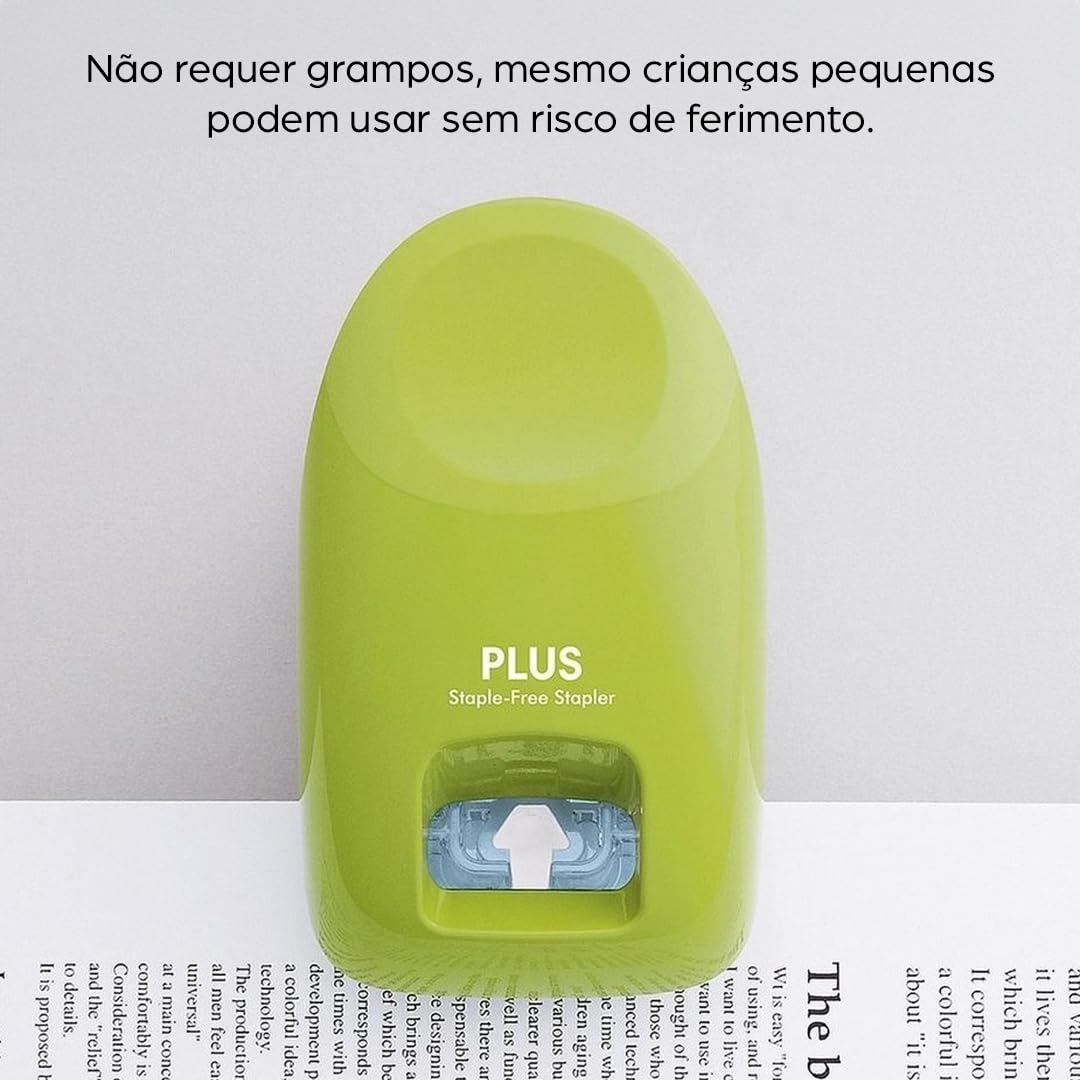 PLUS, stapleless stapler for desktop use, staples up to 10 sheets, with paper guide, stapling and hole punching capabilities, black