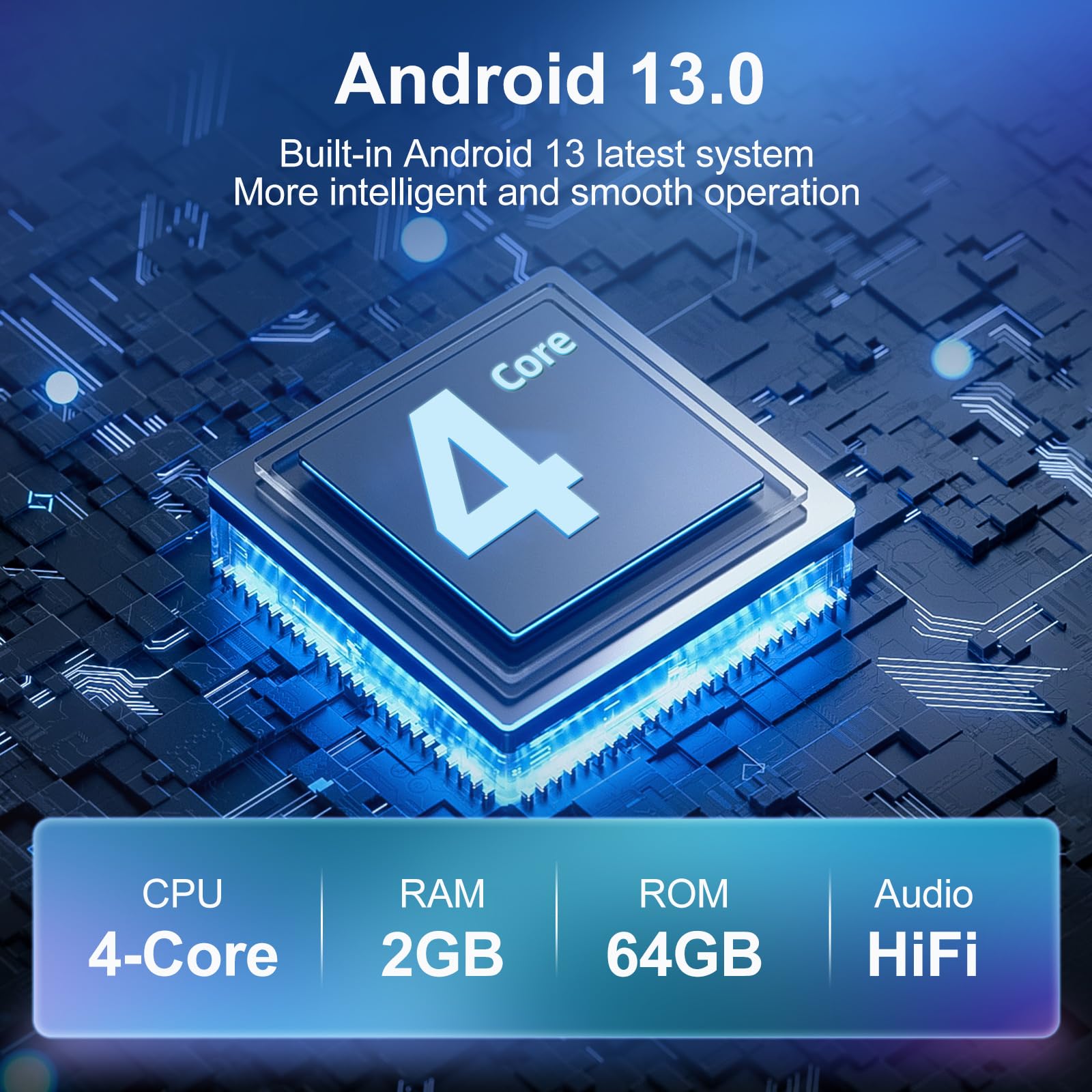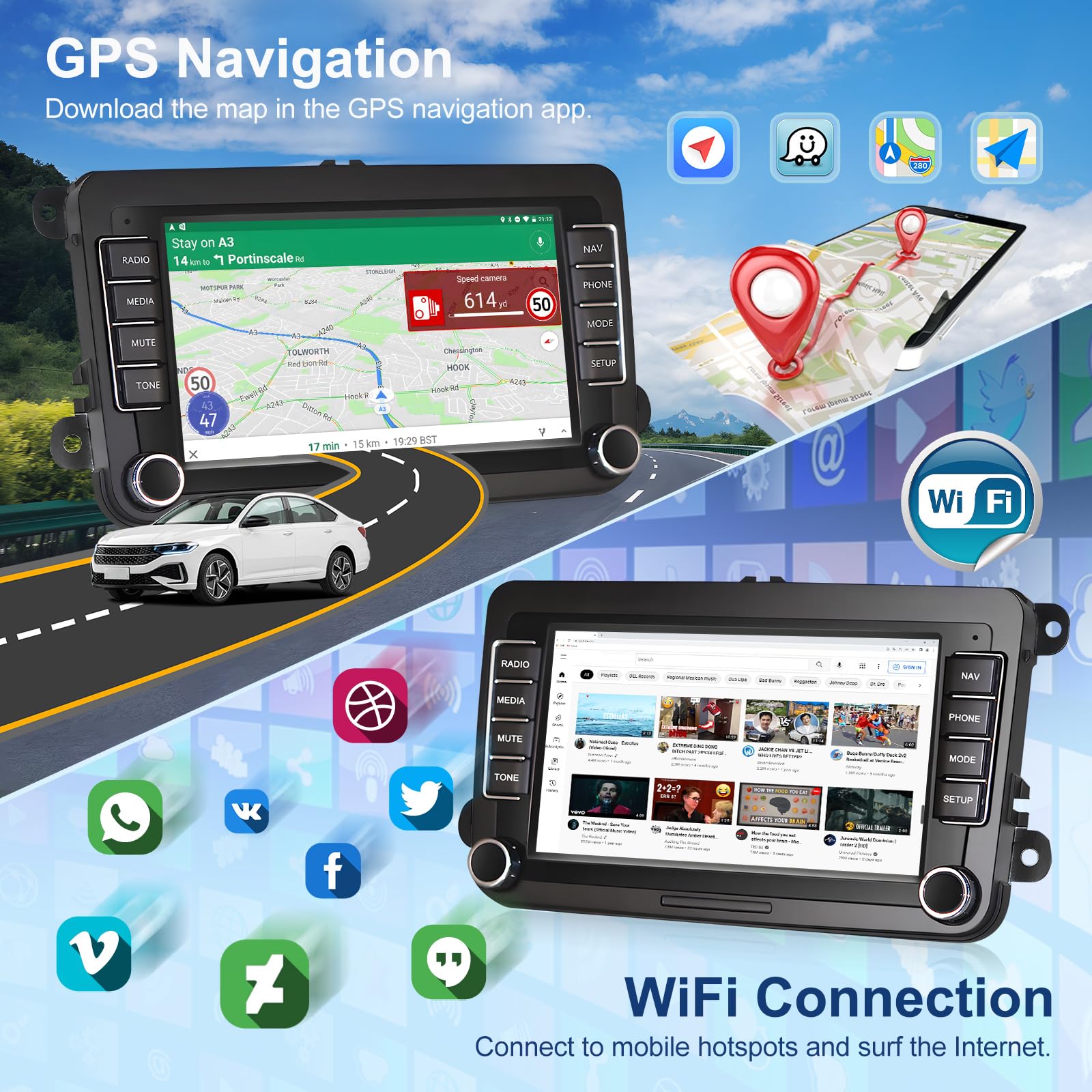 ["[Latest Android 13 System] - 7-inch VW Android Car Radio, built-in latest updated Android 13 system, 4-core processor, 2 GB RAM + 64 GB storage, built-in GPS navigation app, supports HIFi high-fidelity sound quality. At the same time, it also supports the use of WLAN to connect to mobile hotspots with the Internet, providing you with stable battery life and variety.",