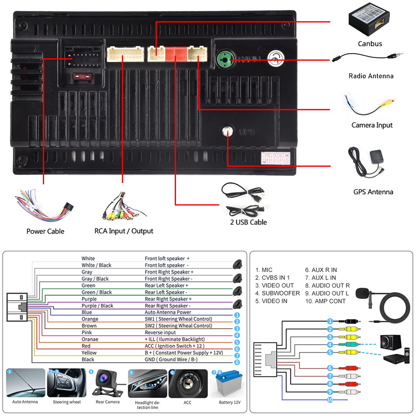 "[Reverse Camera/SWC/Mirror Link] - The reverse camera automatically switches to a safe reverse image for safe backing up. It supports original steering wheel control to control the car stereo. Supports mirroring connection between Android and IOS phone systems."]