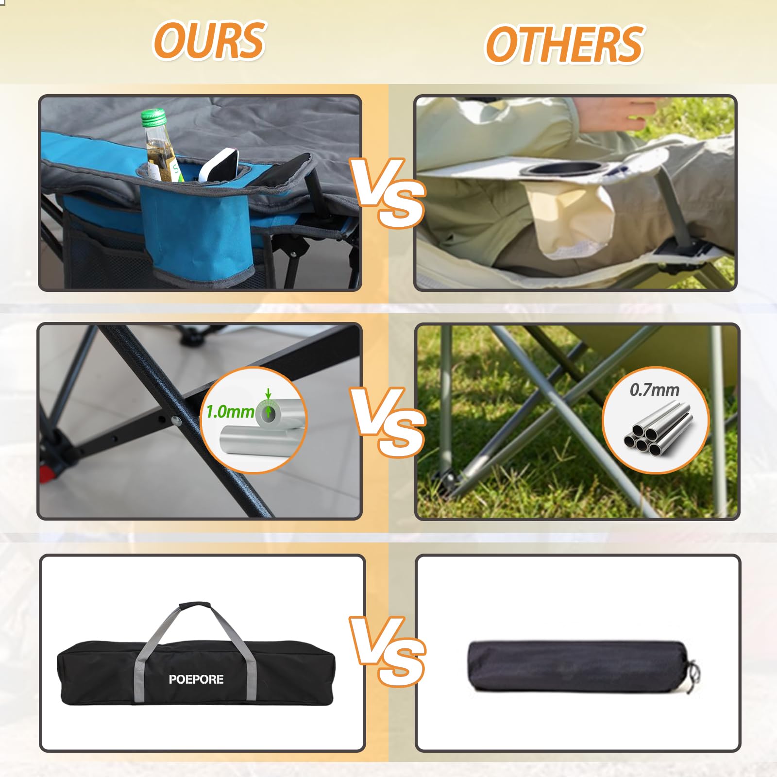 Folding Camping Chair with Cotton Pad: In addition to the removable footrest and pillow, the Poepore camping chair also comes with a detachable cotton pad that can be used as a blanket in low temperatures. The cotton pads are machine washable to save you the hassle of cleaning.