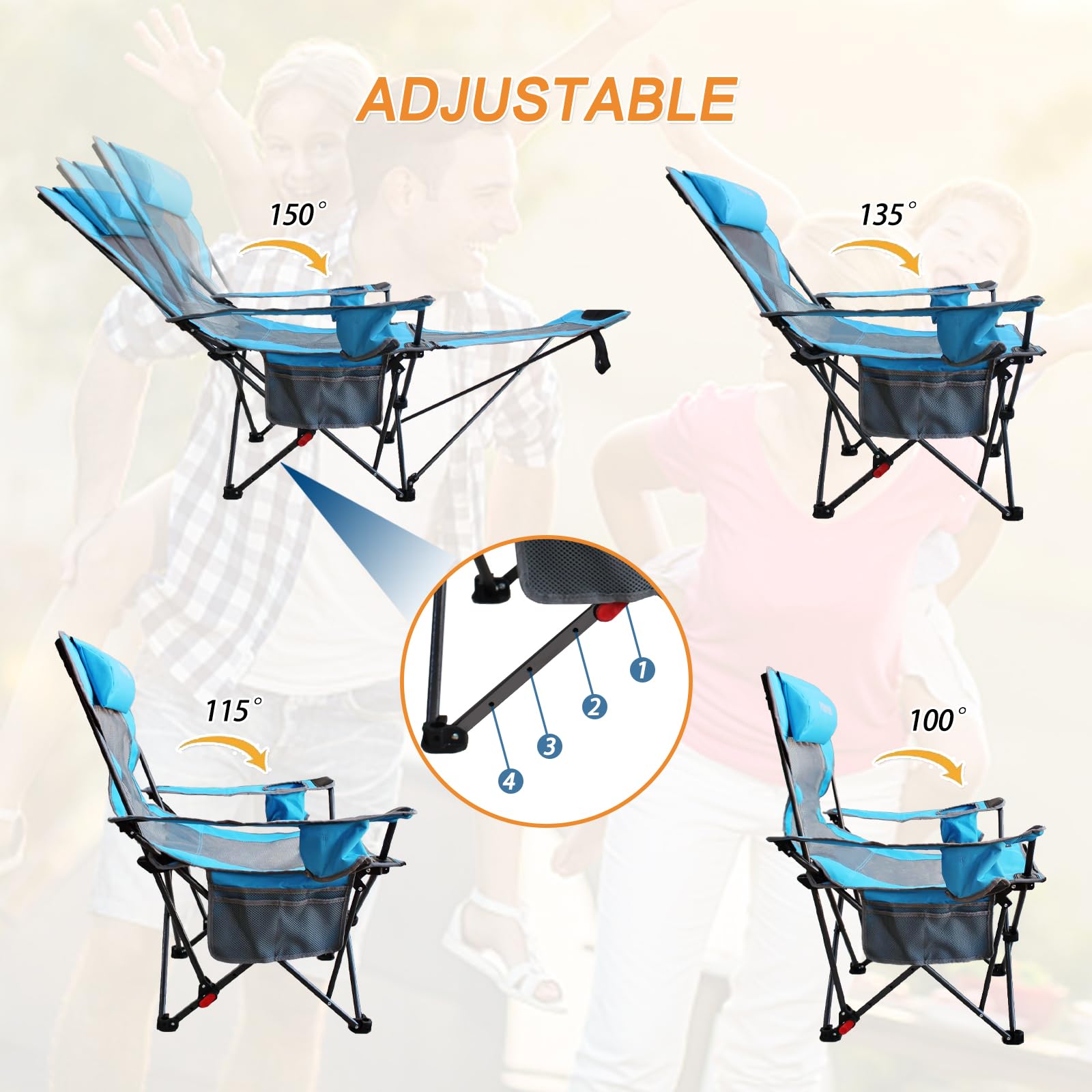 POEPORE camping chair with footrest 4-position adjustable beach chair recliner fishing chair adult camping chairs with cotton pad cushion drink holder armrest pockets Blue