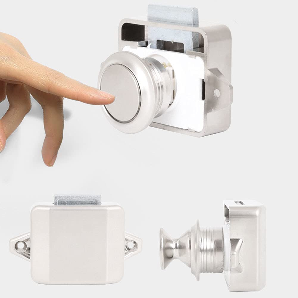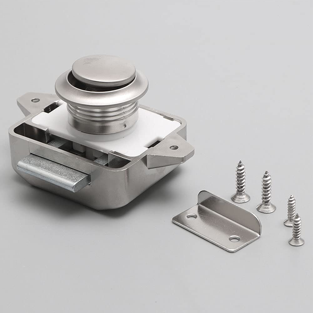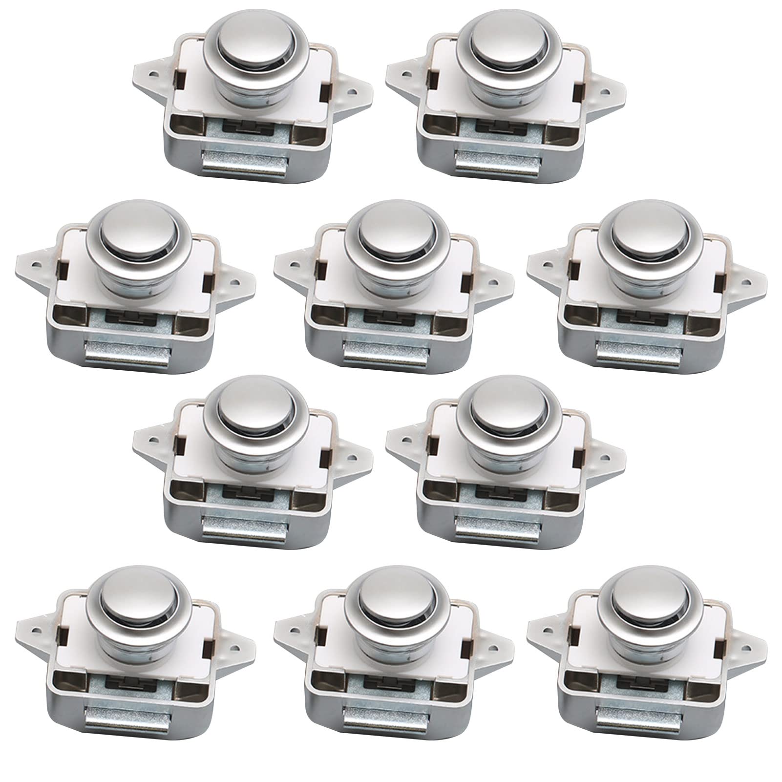 POHOVE 10pcs Push Button Catch Door Lock, Metal Push Button Knob Lock for RV Caravan Van Yacht Drawer Cabinet Door (Silver)