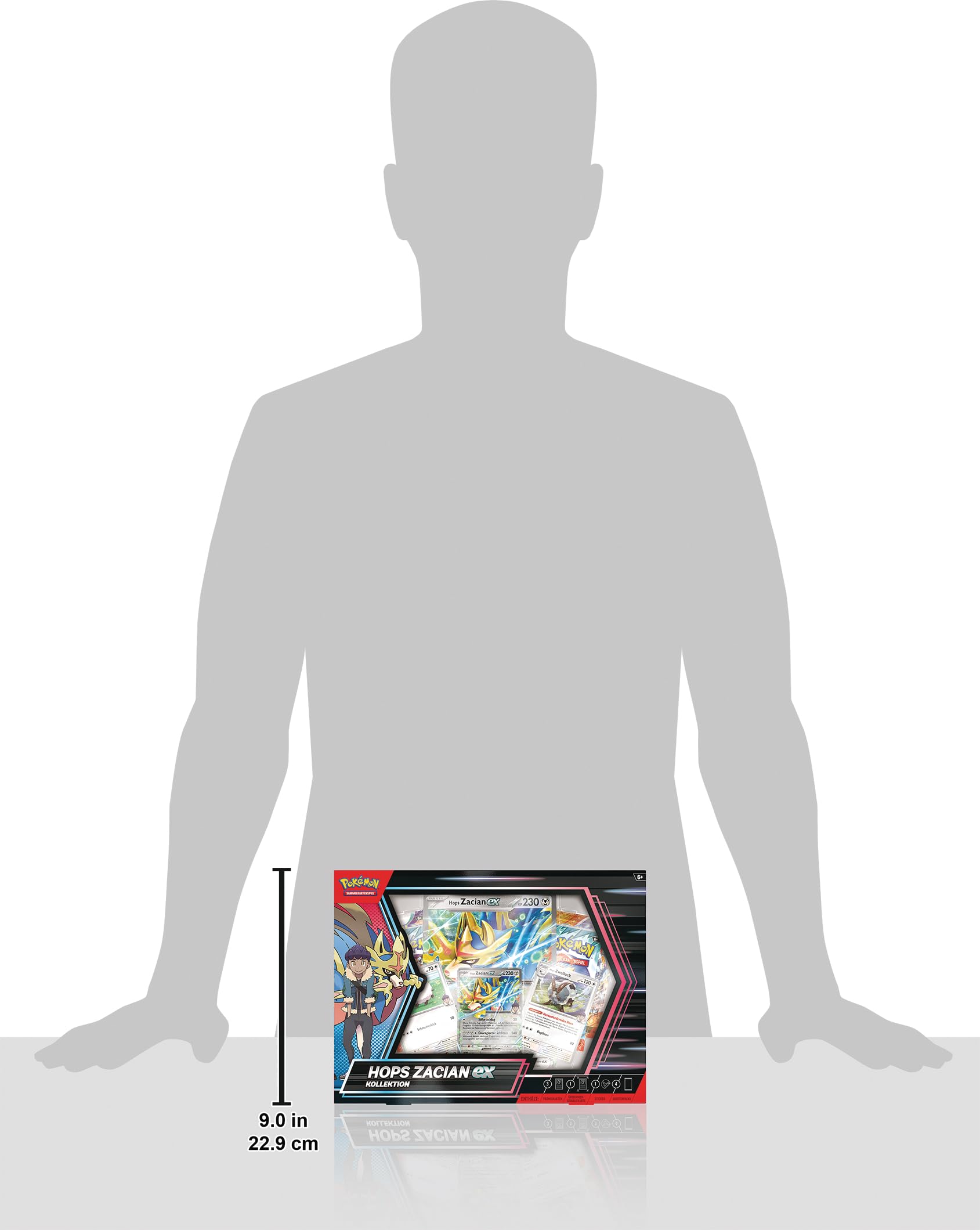 ["Two Galar sizes form a team!","Hop and Zacian make a dynamic duo that truly deserves the title 'Rival'!","You will receive Zacian-EX as a holographic promo card in playable and oversized version, as well as two holographic cards featuring Hop's Wooloo and Hop's Dubwool for your deck!","You will also get 4 Pokémon Trading Card Game booster packs, 1 photo sticker, and 1 code card for Pokémon Trading Card Game Live.","This is a great gift for collectors and players of the Pokémon Trading Card Game."]