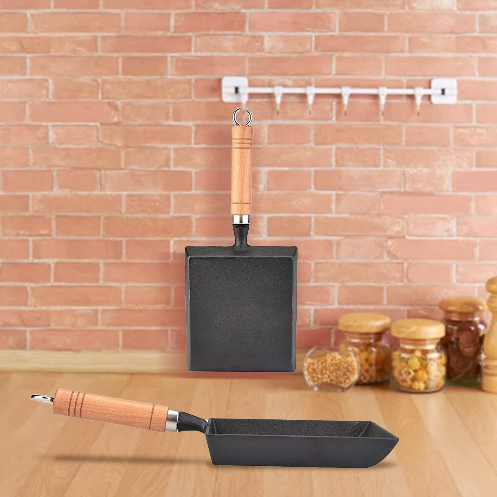 Pokerty Tamagoyaki Pan, Mini Iron Omelette Pan with Anti-heat Wood Handle for Tamagoyaki Omelette Pancakes