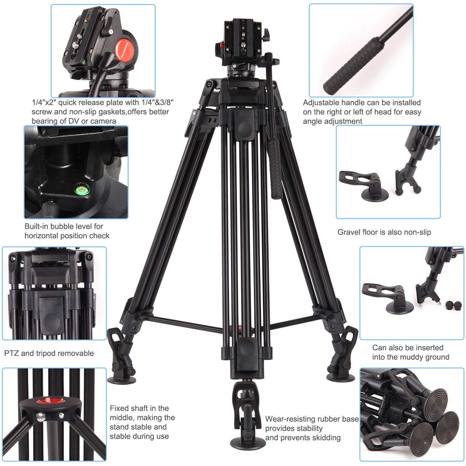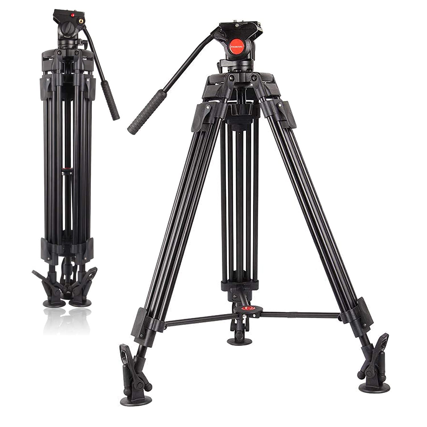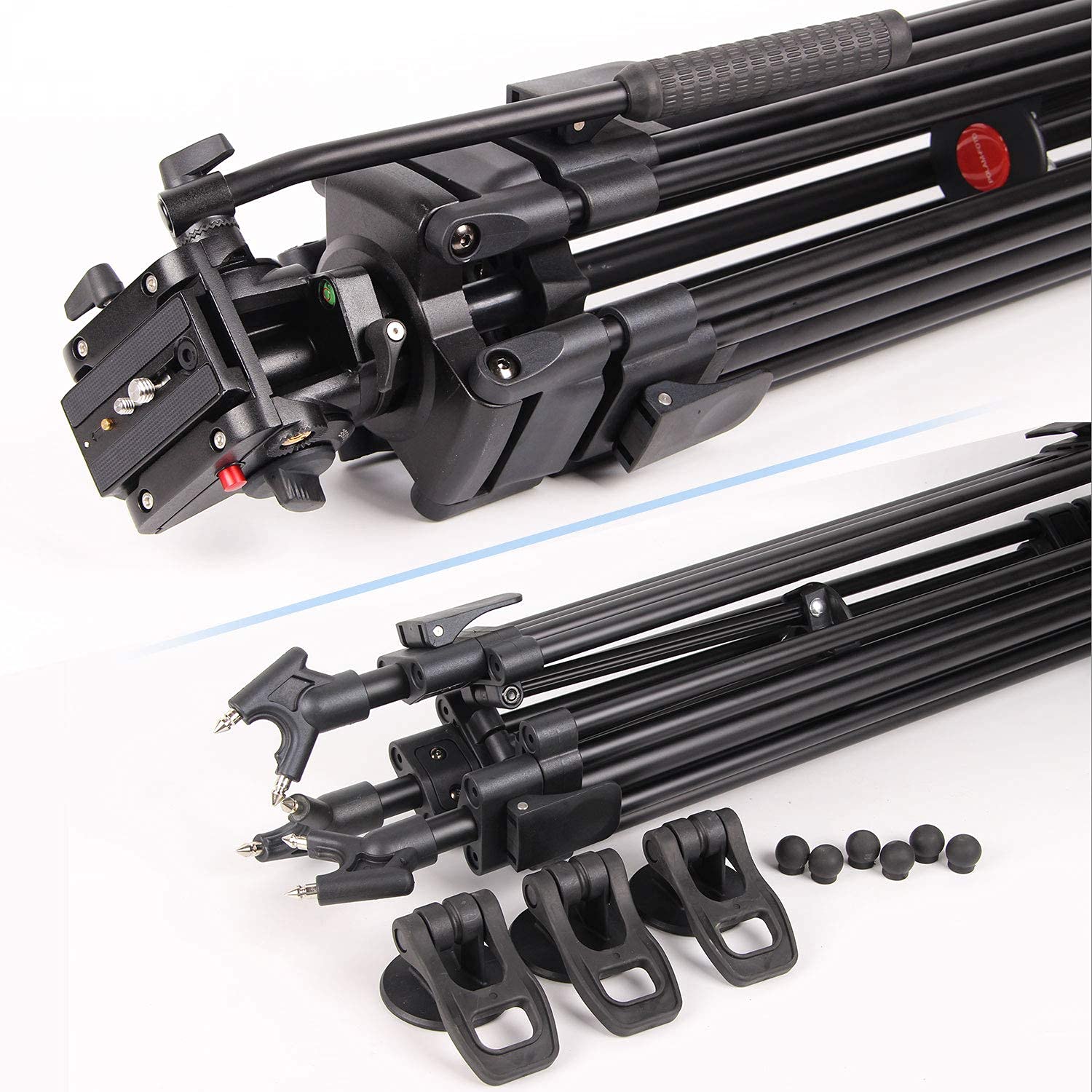 POLAM-PHOTO 163cm Professional Video Tripod with Fluid Head, High-performance Aluminum Double Tube Tripod, Load Capacity 8kg, Durable Tripod for Video Cameras