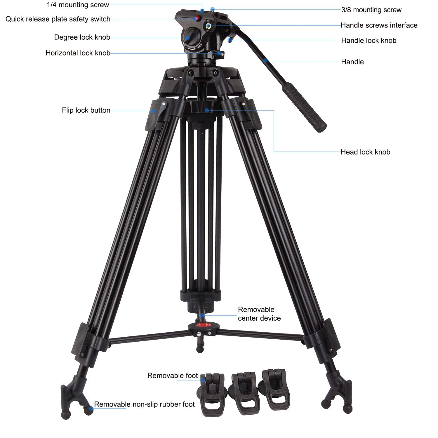 Precise and flexible fluid head: The precise fluid head allows smooth 360° rotation and vertical tilt adjustment from -75° to +90° to meet different shooting angles. With an integrated safety lock and a bubble level, the stability of the equipment and the alignment are optimized, ensuring that every picture remains stable and clear.