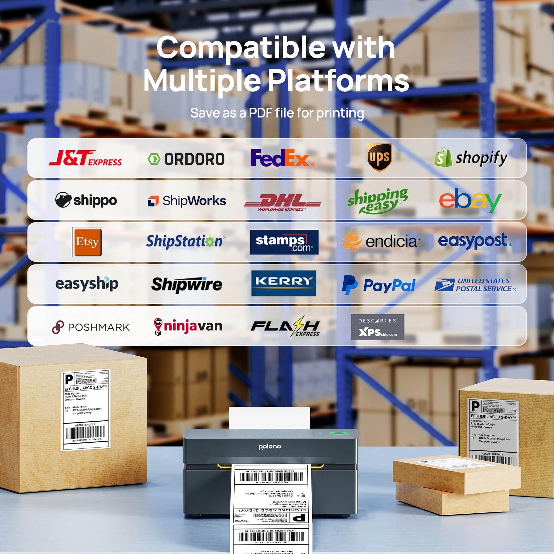 Printing via USB: For Windows and Mac, you can connect the shipping label printer via a USB cable. This label printer is easy to set up and use, ideal for small businesses. Wide compatibility 4x6 inch shipping label printer for shipping packages. Refer to the operating video and manual for setup instructions. Note: The PL80E shipping label printer does not support Chrome OS.