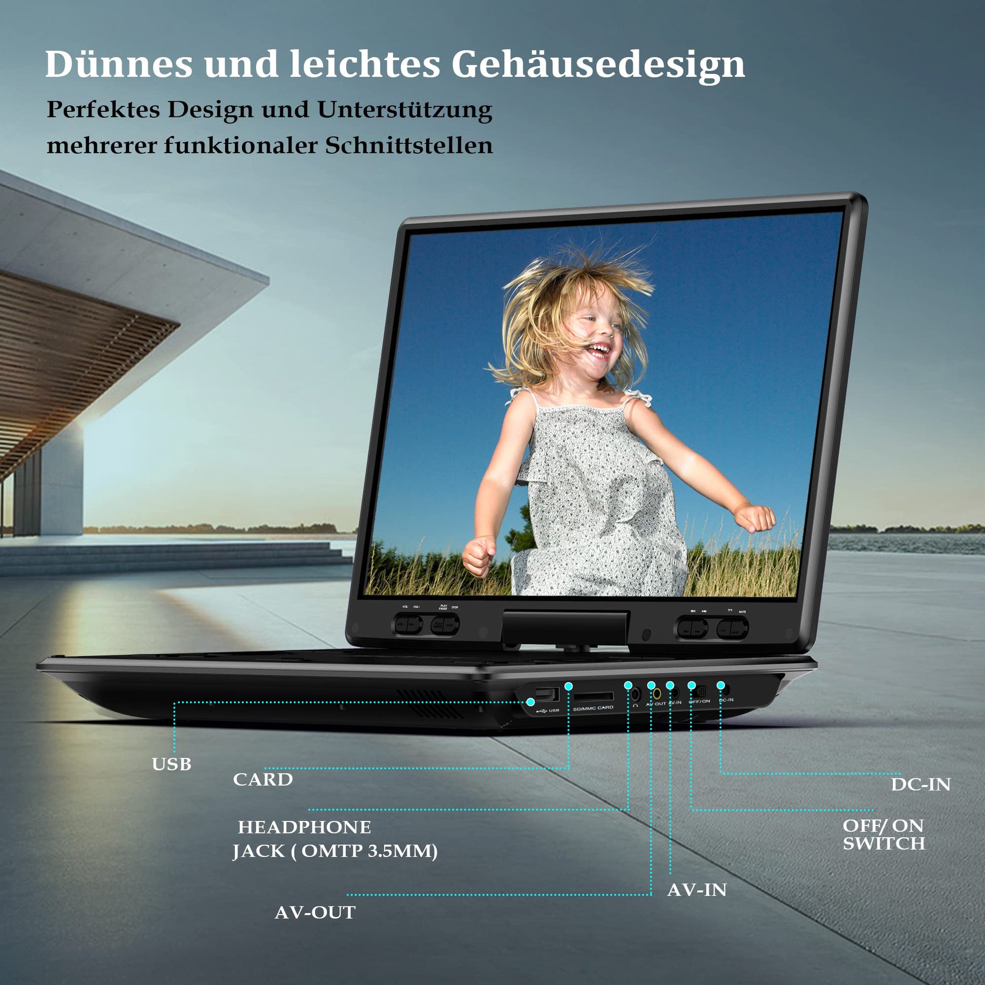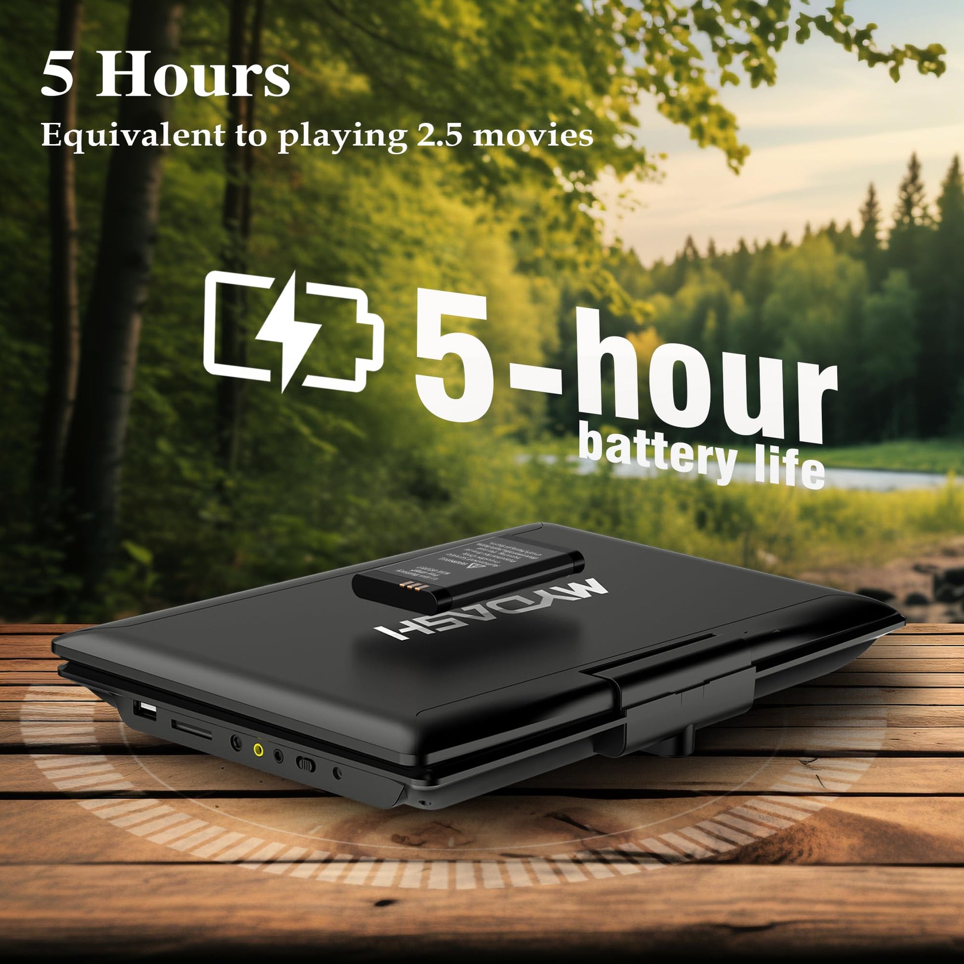 ["Large, 12.5-inch HD Rotatable Screen: The portable 12.5-inch DVD player with 1280*800 HD TFT-LCD screen, 270° and 180° rotation function provides the ultimate viewing experience, it can also be easily installed on the back seat of a car for convenient viewing on the go","Lightweight Appearance, Unique Button Design: The DVD player's housing is designed to be thin and lightweight, with the overall thickness of the housing closely resembling that of a notebook. The buttons are designed to provide an additional","New, Easy-to-Install Headrest Mount: Car DVD player mount with adjustable straps allows for quick, easy, and secure attachment to most car seat headrests, truck seats, minivans, and SUVs: It allows you to focus on driving while entertaining your children or passengers in the back seat, making it the perfect companion for families on the go.","Regions-Free & Multi Formats: MYDASH portable DVD player supports CD, DVD, DVD+R(-R), DVD+RW(-RW), VCD, SVCD-R(RW), CD-R(RW) from all regions except Blu-ray and is compatible with multimedia files via USB and SD Card (MAXFAT32GB), such as VOB, AVI, MPEG1, MP3, WMA, JPEG. Blu-ray CD not supported","Last Memory & Sync TV/Projector: MYDASH portable player features a pause memory function and resumes where you left off without the hassle of starting over, AV input/output can sync movies to large screen/TV. To enjoy your favorite movies."]