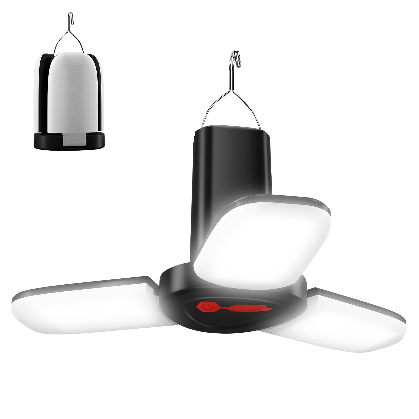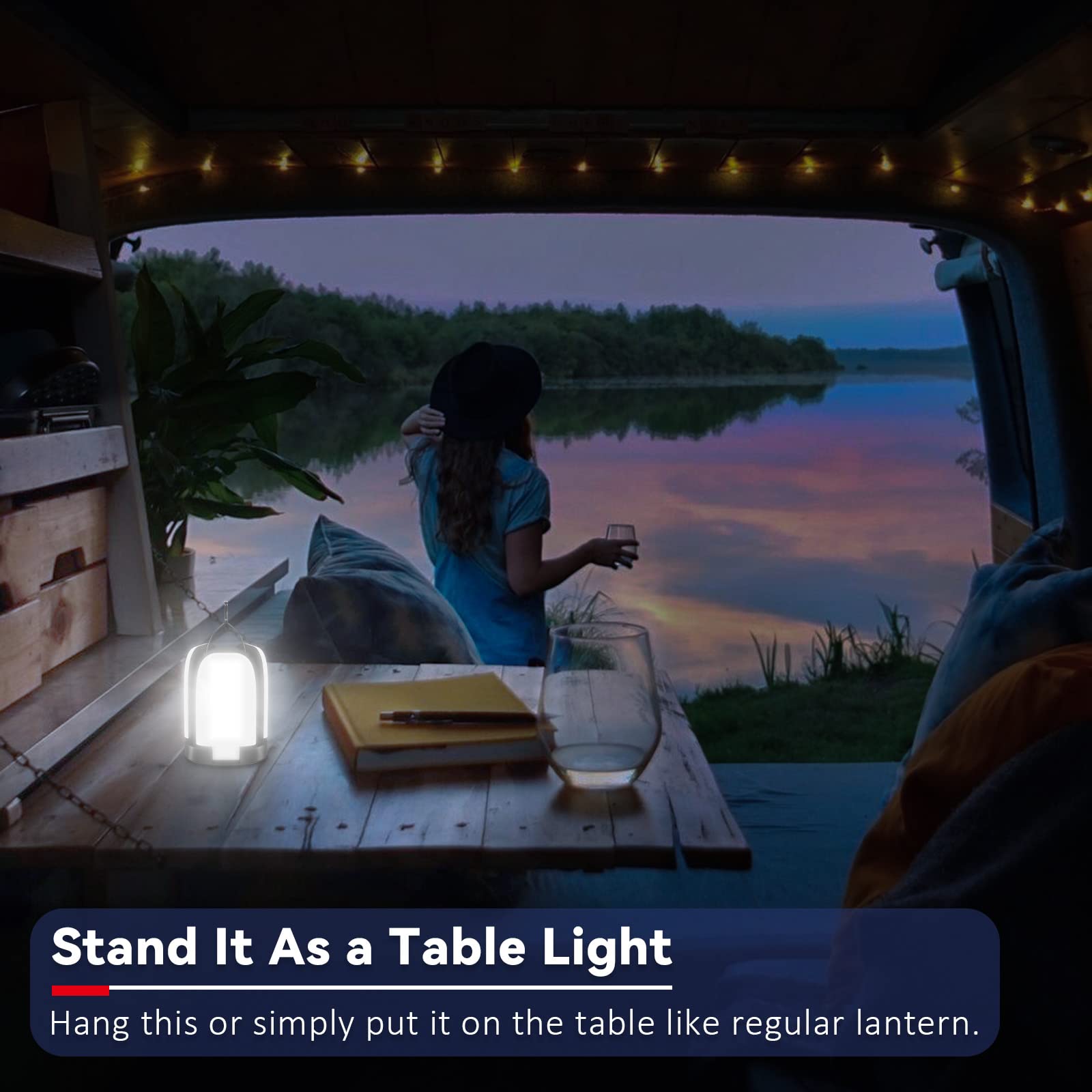 The camping lantern can be charged with a USB cable: Don't worry about the battery running out during power outages or emergencies. Charge it via car, power adapter, or laptop, about 2 hours for a full charge. Use it to light up dark basements, closets, or as a repair light for household maintenance.
