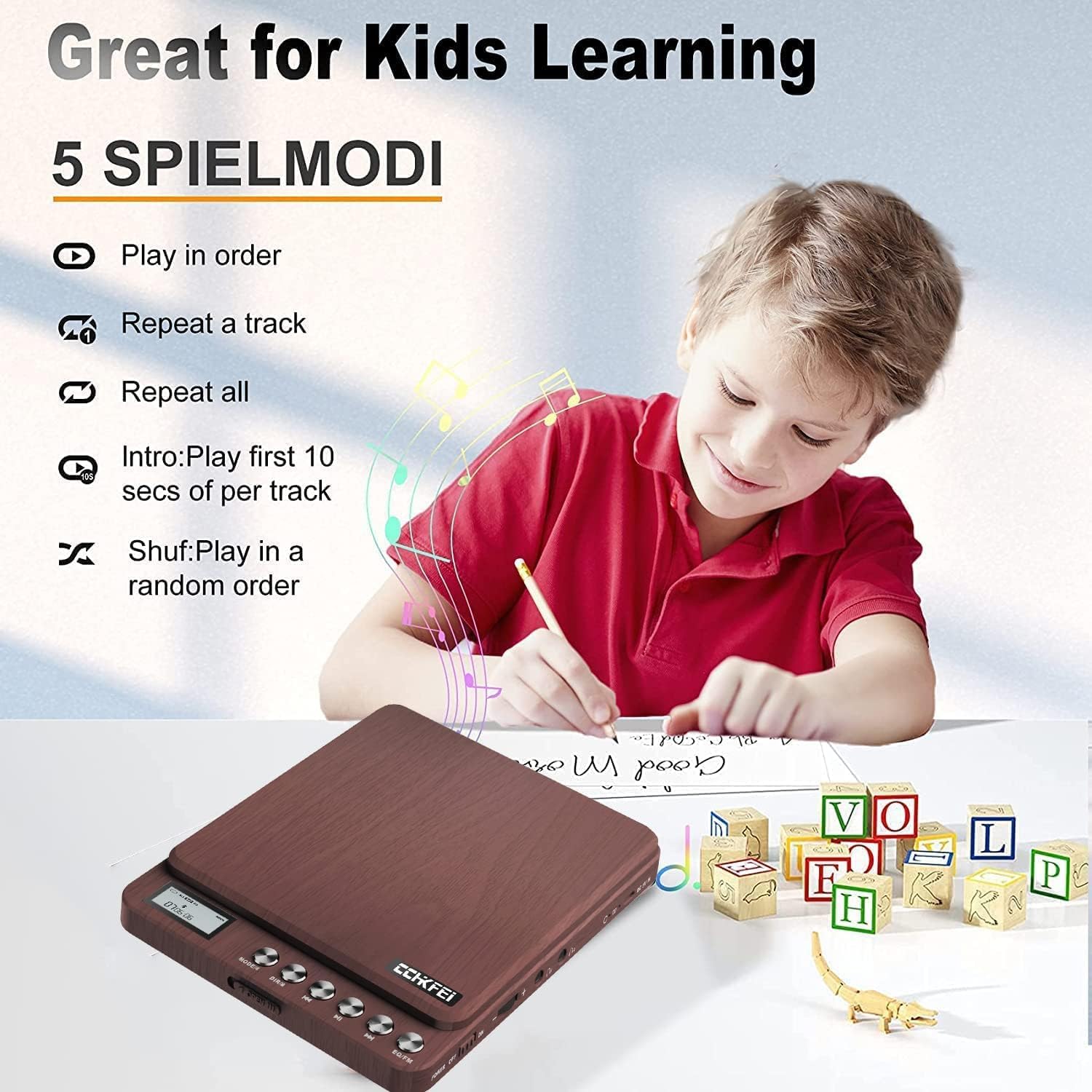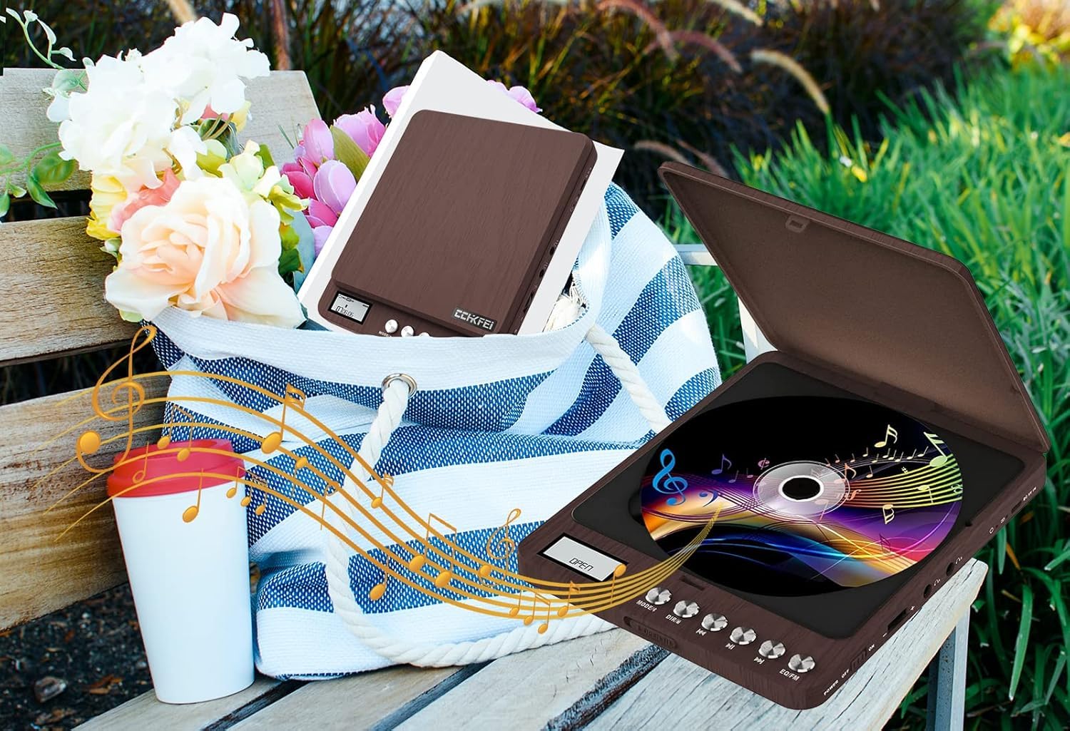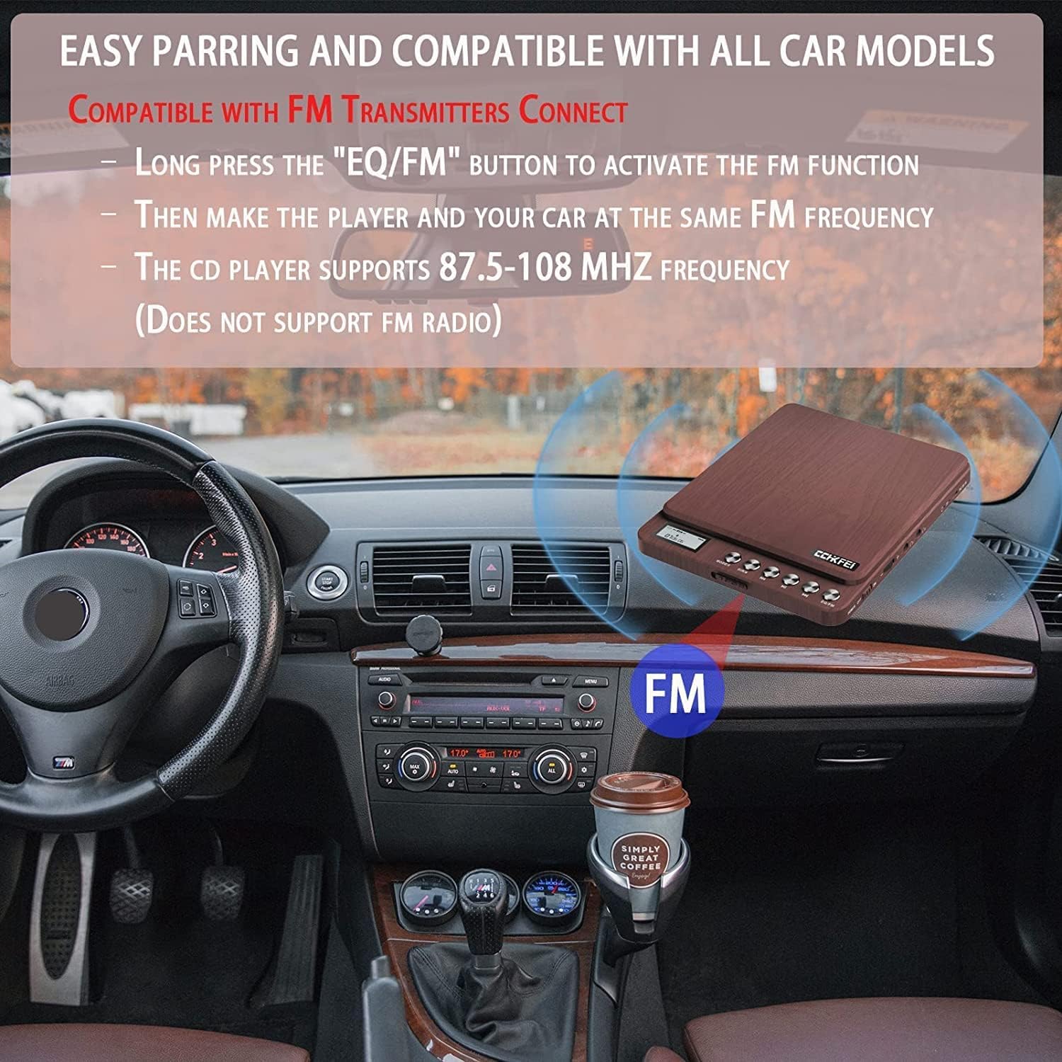 ["π§ Bluetooth CD Player smart connection: The personal CD player supports Bluetooth 5.0, providing a larger wireless range and faster Bluetooth connection. It can easily be paired with Bluetooth headphones or speakers. Our personal CD player is also compatible with other audible devices via a 3.5mm audio socket.","π§ CD Player FM transmitter for car: Press the switch button of the FM transmitter, connect to the car radio on the same frequency, and then connect your CD player. Play music or audible books from CD player devices through your car stereo system. Preserves through the FM radio signal (Note: This CD player supports FM radio).","π§ Portable CD player strong compatibility: Supports CD, MP3-CD, CD-R, and CD-RW. Portable CD player with built-in dual stereo speakers. You can play music through its speakers, so you don't have to constantly wear headphones. You can use this CD player in 4 ways: Bluetooth, speakers, headphones, Aux connect external speakers/cars.","π§ 2000 mAh rechargeable battery, long playtime: The portable CD player with built-in rechargeable 2000 mAh lithium battery can play continuously for more than 10 hours. Convenient charging with the provided USB charging cable. CD player with dual headphone connection allows you and your family members to enjoy your favorite music or calm music.","π§ Anti-shock: Using advanced shock protection technology, the CD player features 160 seconds of anti-skip protection for CDs, and 300 seconds of anti-skip protection for MP3-CDs. You can use it in all kinds of situations. It is an ideal gift for music lovers, language learners, elderly people, children, friends, and expectant mothers."]