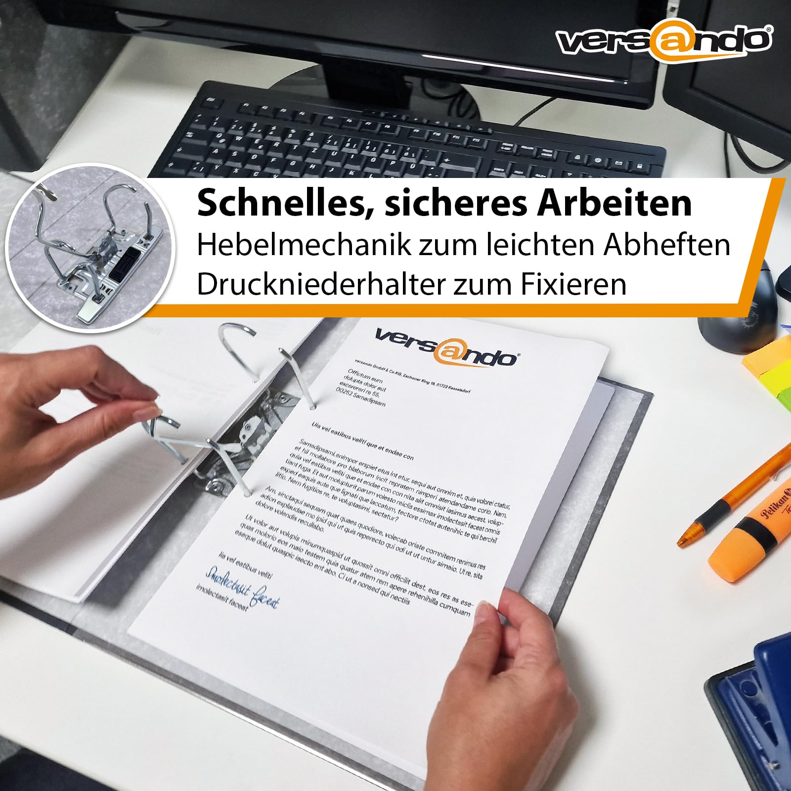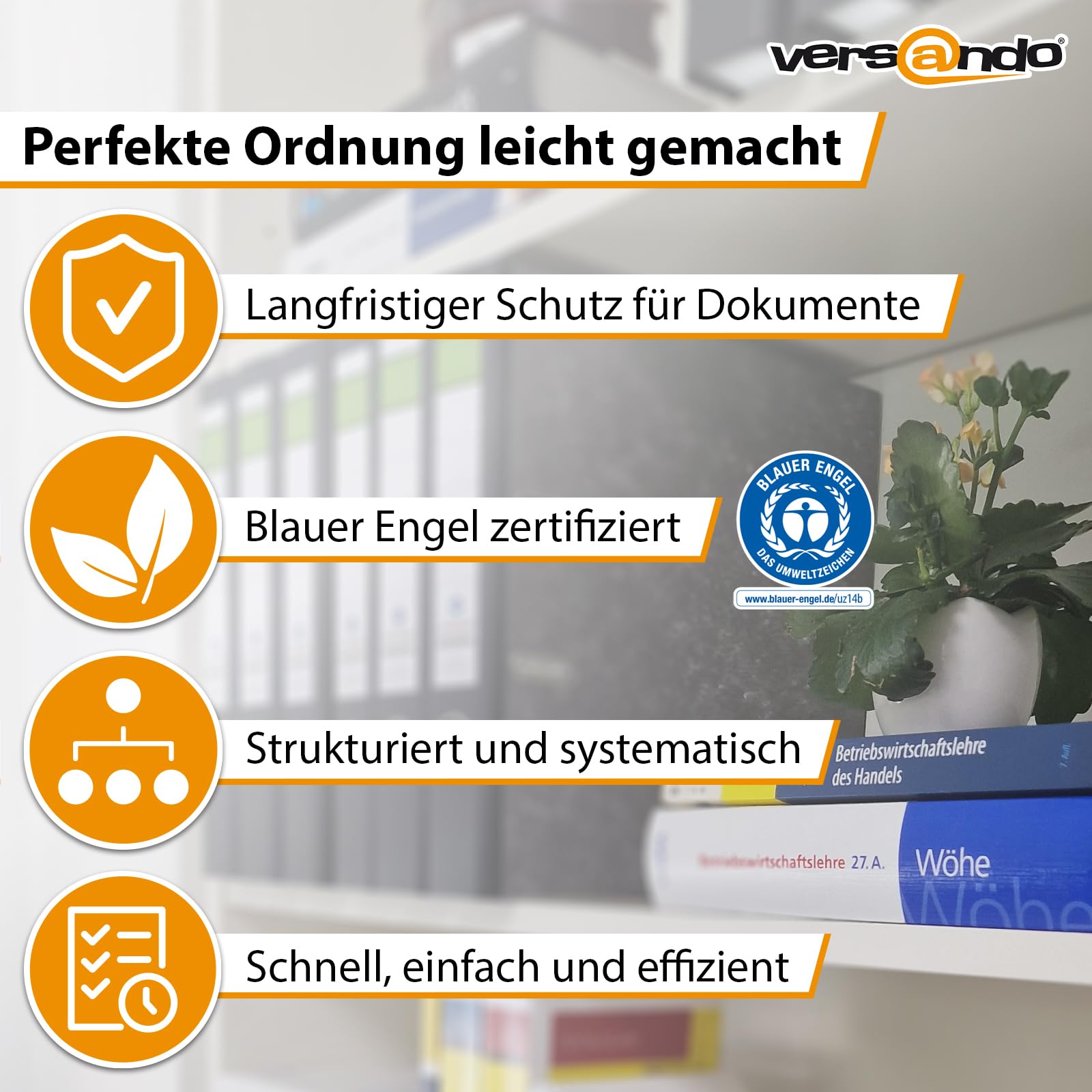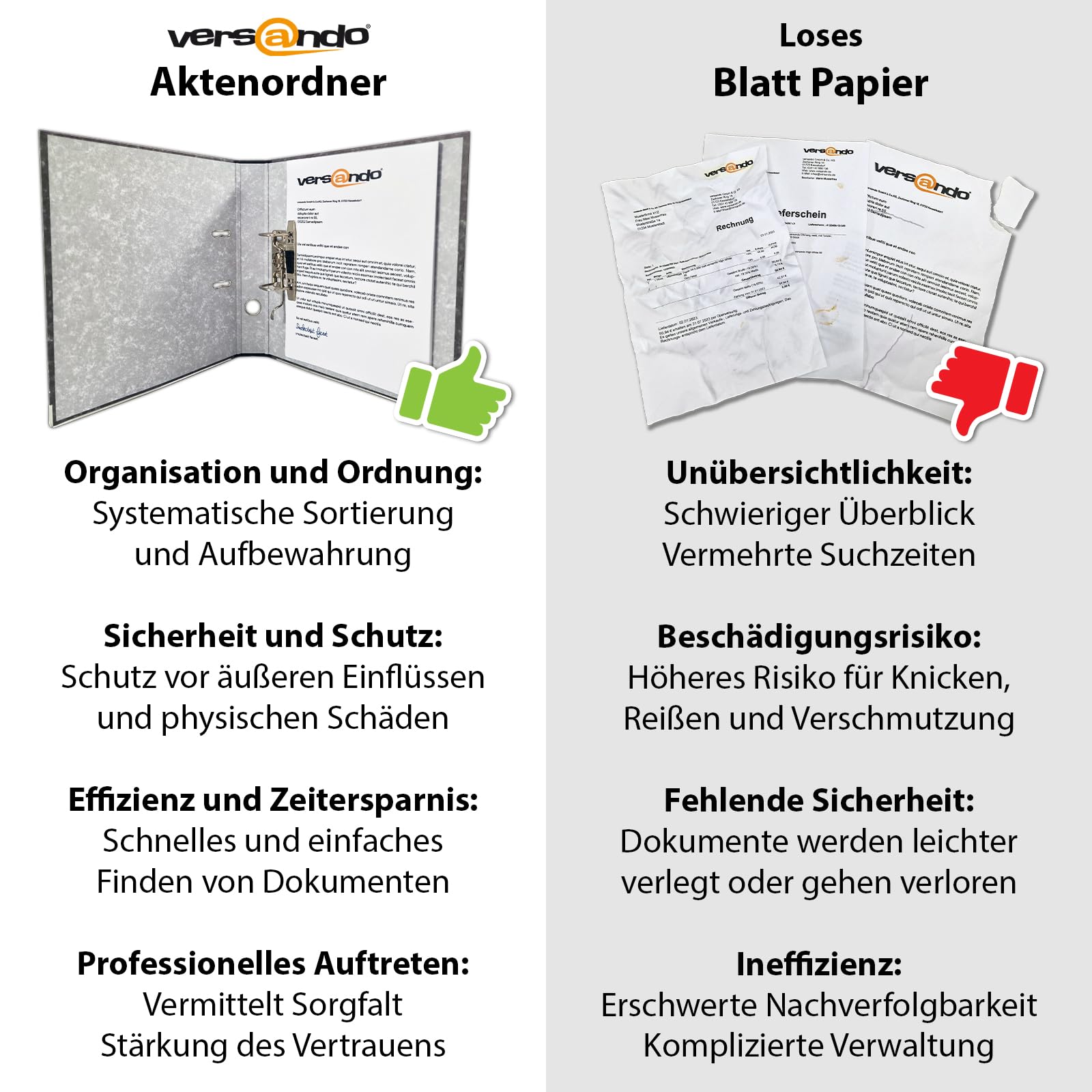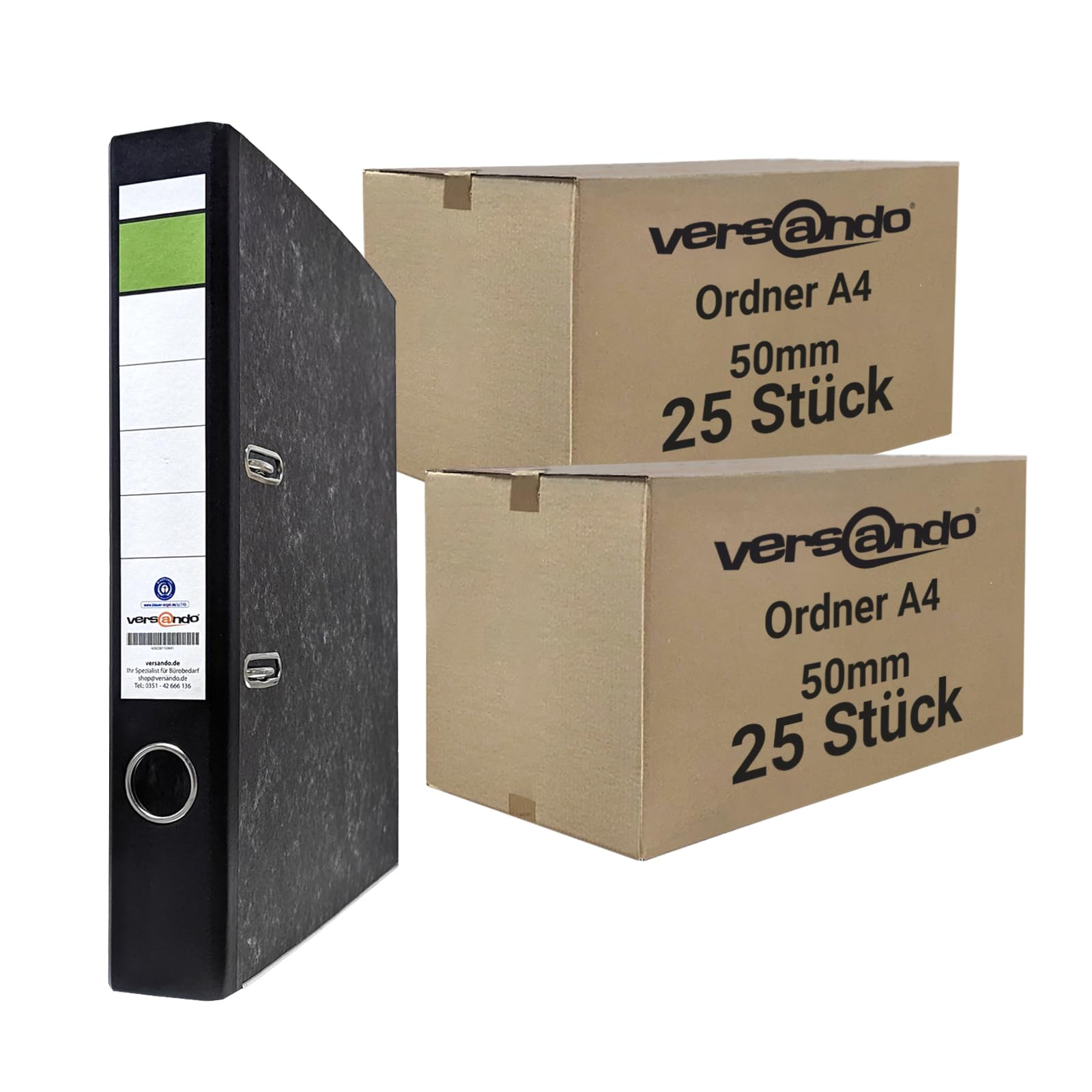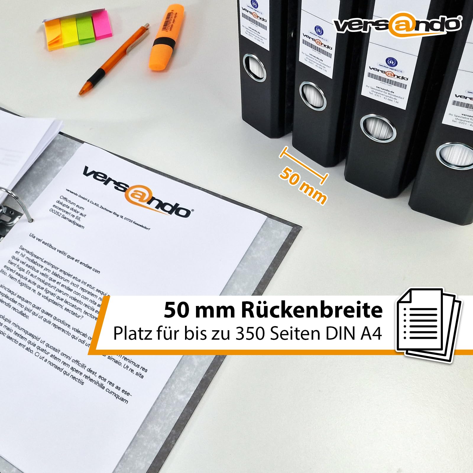 "50 folders for letter size paper with 2 inch spine in black, marbled exterior, black spine with spine label for labeling, with lever mechanism for fast filing of up to 350 sheets of paper, dimensions: 12.6 inches high - 11.2 inches deep - 2.2 inches wide, edge protection, metal-reinforced handle hole, space-saving slots for archival storage, European production - with environmental label Blue Angel"