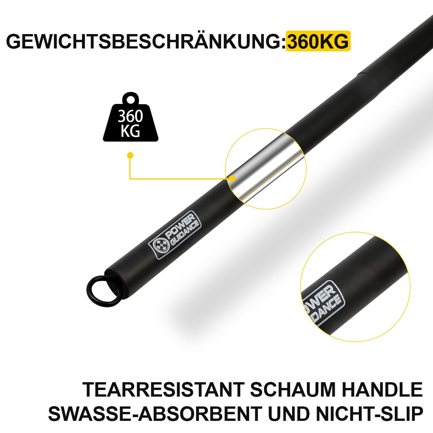 ["【Multi-Purpose】The POWER GUIDANCE Fitness band set includes 1x Pilates Bar, 3x Resistance bands, 2x Link buckles and can be used alone or in combination to offer 3 workouts.","【Adjustable Pilates Bar】The Pilates Bar has a three-part, connectable design that can be selected as needed. It is recommended that first-time users choose a pull-up bar with two sections.","【Full Body Workouts】Our Resistance bands set trains all muscle groups of the body from shoulders, arms, back, buttocks to legs when used in combination. The resistance band alone can be used as an aid for lifting movements such as pull-ups. The Pilates Bar alone can be used exclusively for training the back muscles.","【Ideal choice for home fitness equipment】The Resistance band bar kit can help you with squat training instead of dumbbells, it can also help you with flatlift training instead of a barbell. An integral part of your home gym.","【Portable and easy to install】The pull-up bar can be divided into 3 sections, stacked, and carried, the length of a single section is up to 36 cm. Always keep the side of the hanger ring outside when installing and then tighten the connection in the middle."]