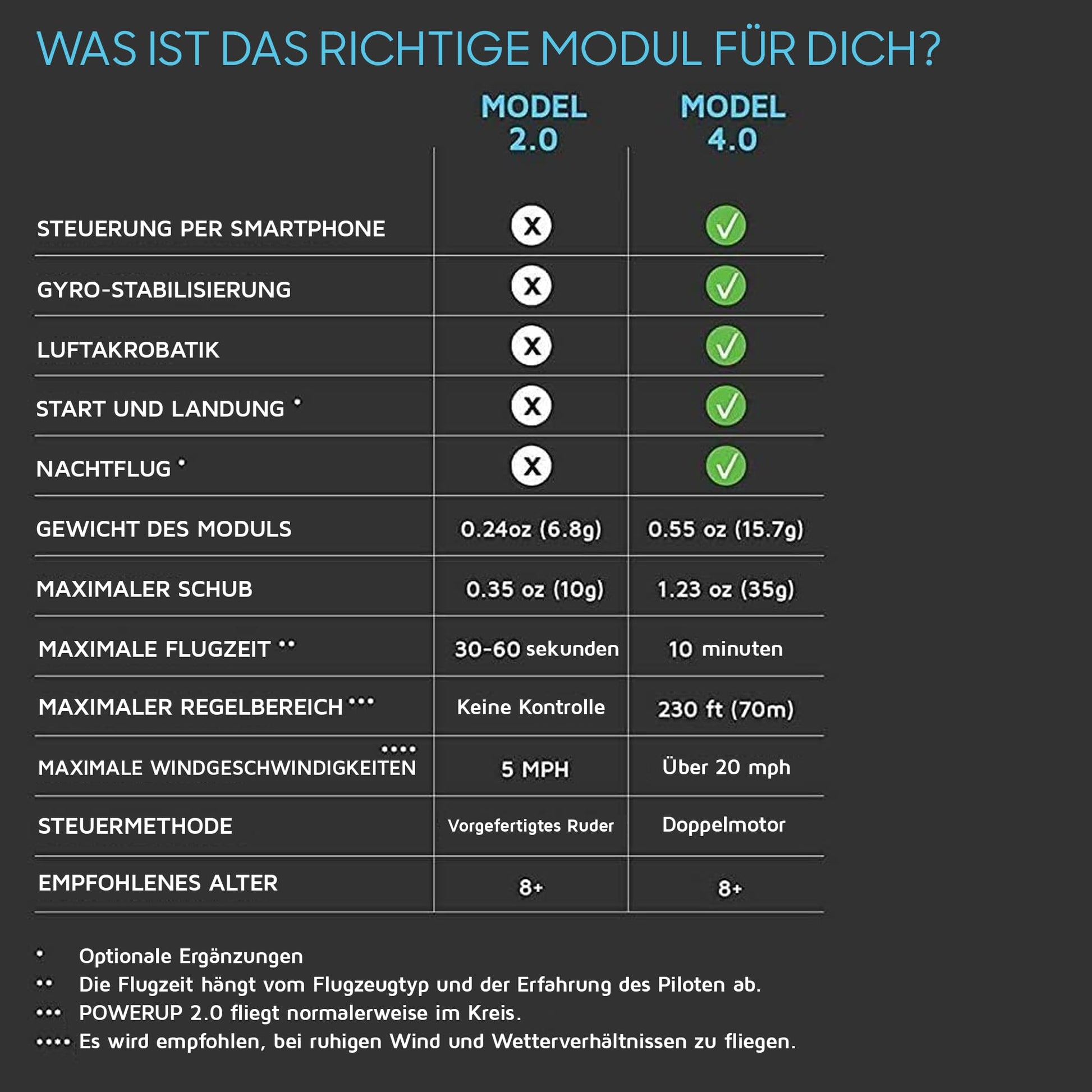 Great stability: Loopings, barrel rolls, and hammerheads are possible in Acro mode. The takeoff assistant and wind stabilizer automatically calibrate the plane in turbulent weather. With PowerUp 4.0, every hobbyist becomes a pilot.