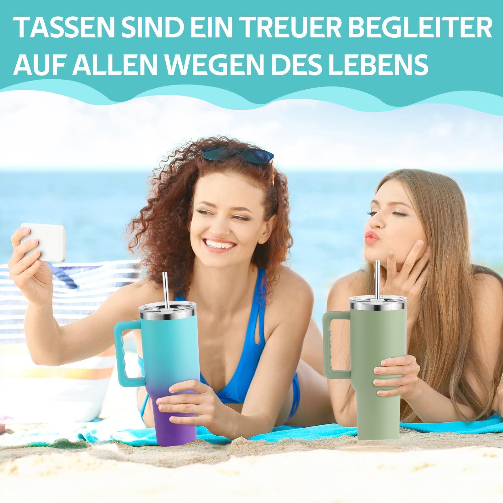 "Best Life Companion: Our thermal cup with handle features an ergonomic silicone handle and a tapered design that fits easily into most car cup holders and backpacks. Perfect for daily use, whether at home, in the office, at the gym, or outdoors! The cup with lid and straw will be your indispensable life companion."