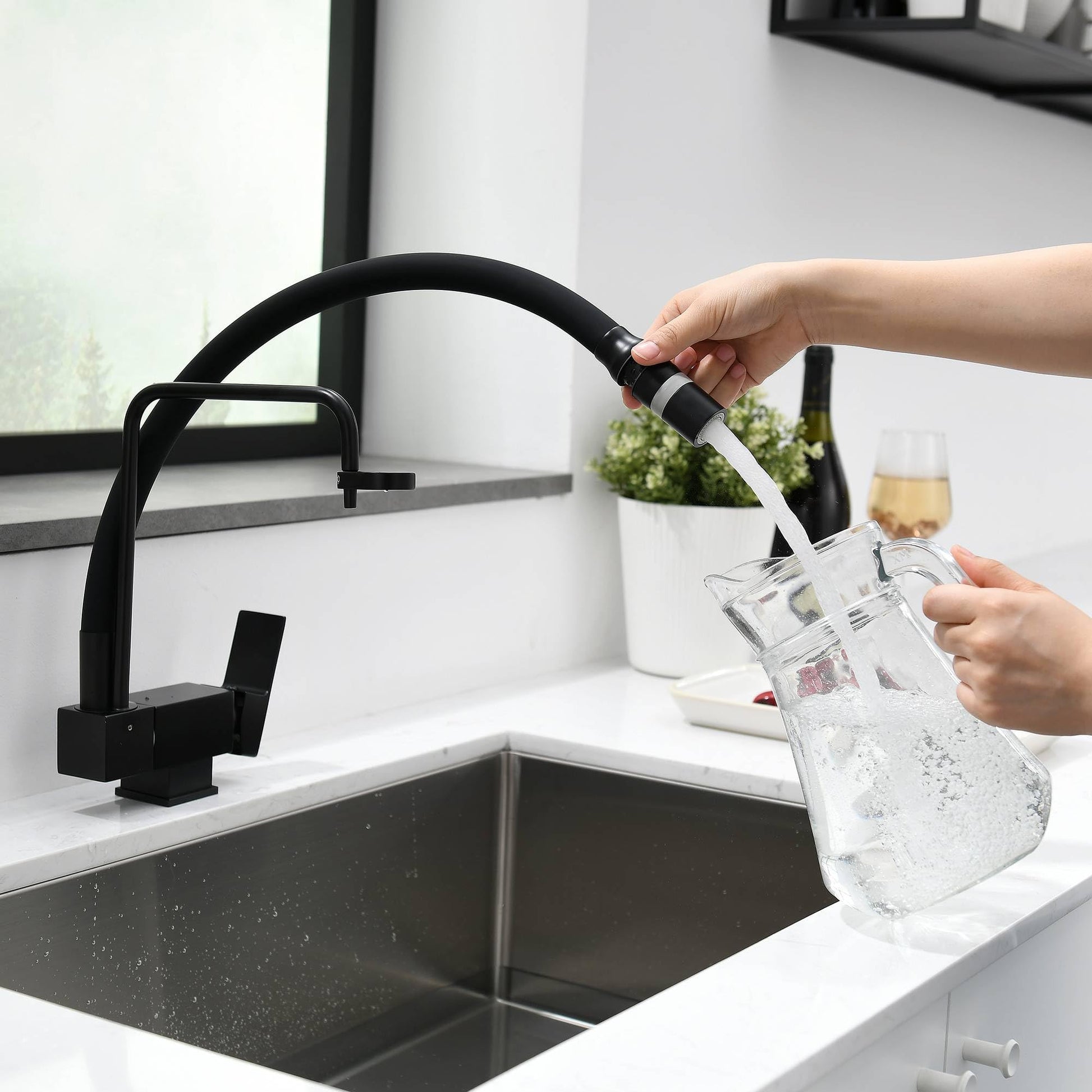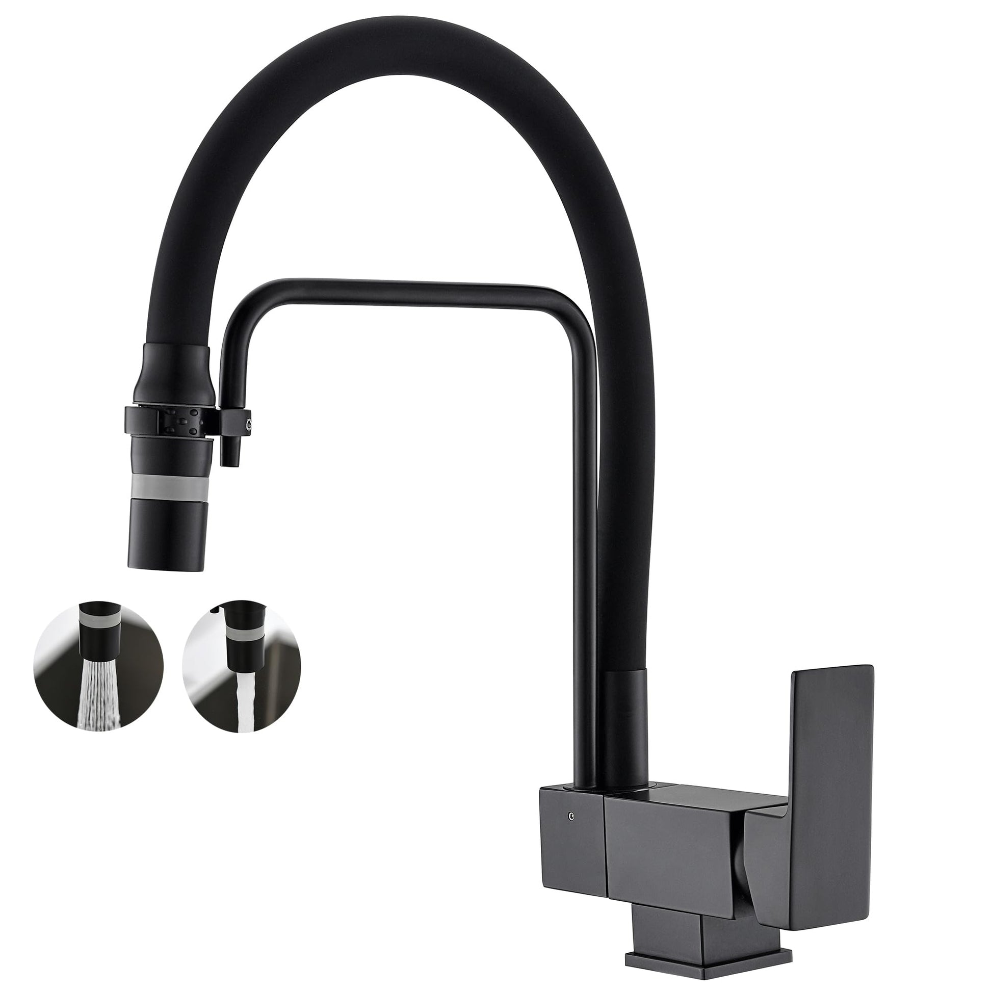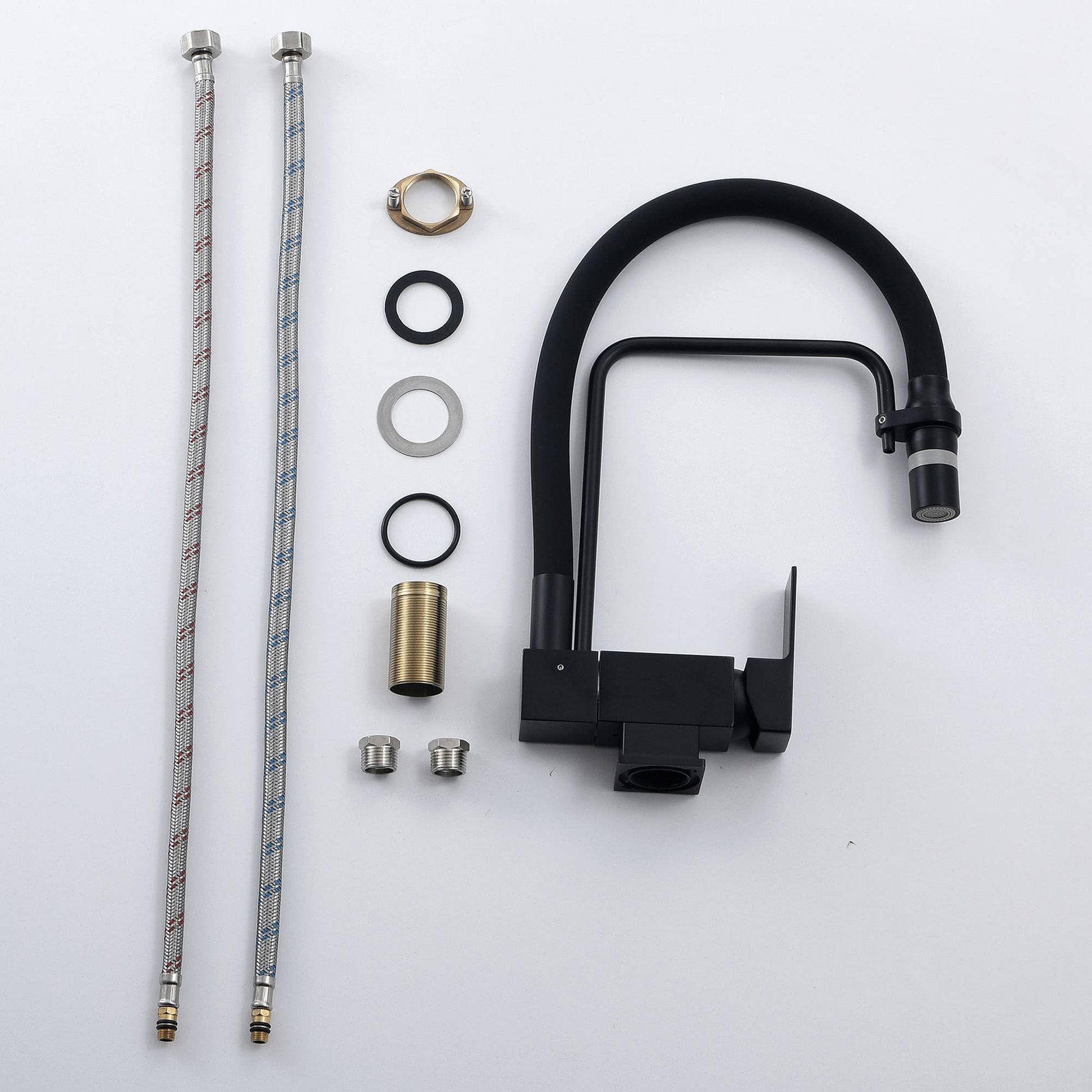 Pre-Window Kitchen Faucet with 360° Adjustable Water Tap with 2 Spray Modes, 360° Rotatable Faucet and Under-Window Installation, Ideal Mixer for Kitchens Below the Window (Black)