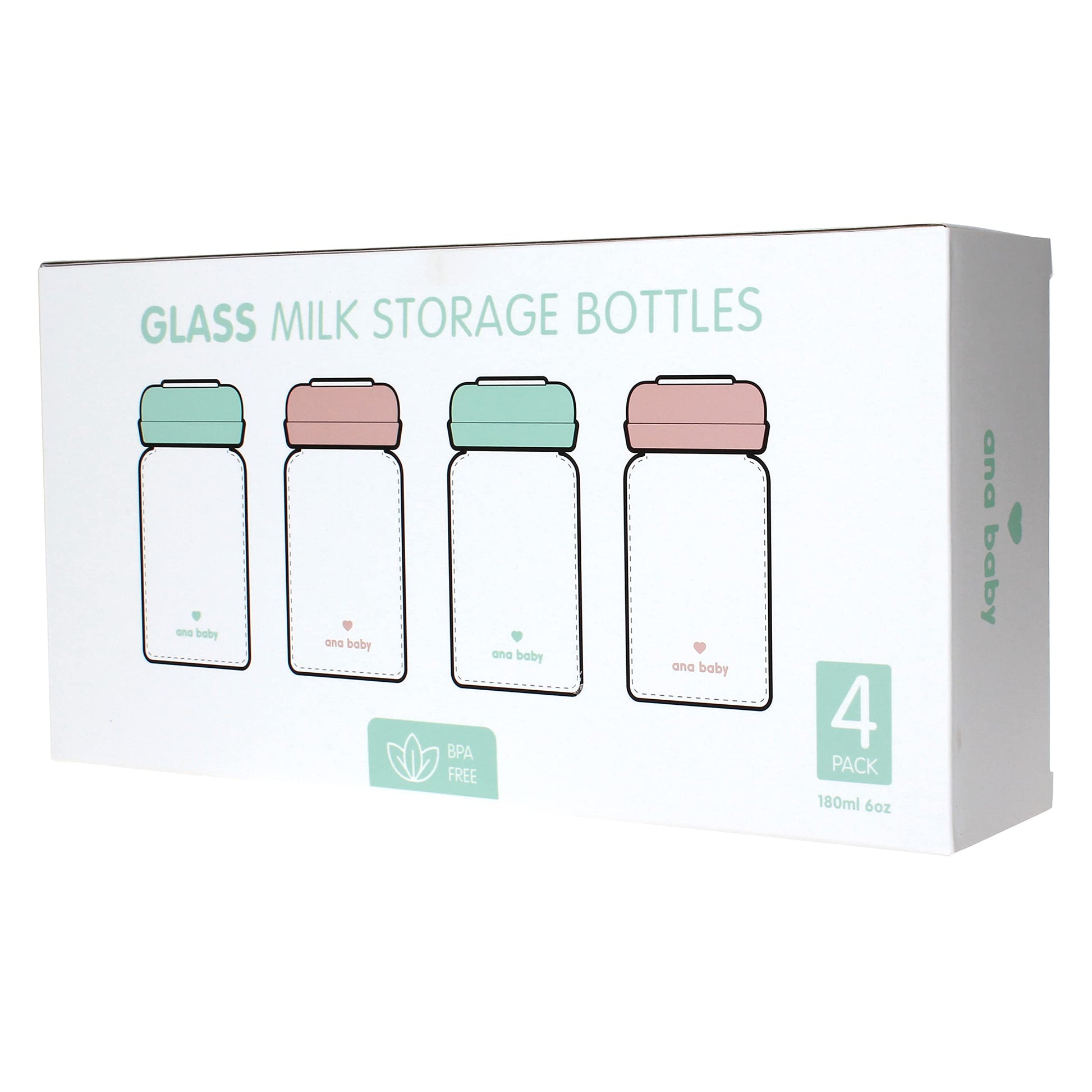 Premium glass breast milk storage bottles, 4 pieces, 180 ml, dishwasher, freezer and microwave safe (glass bottles for breast milk, 4 x 180 ml)
