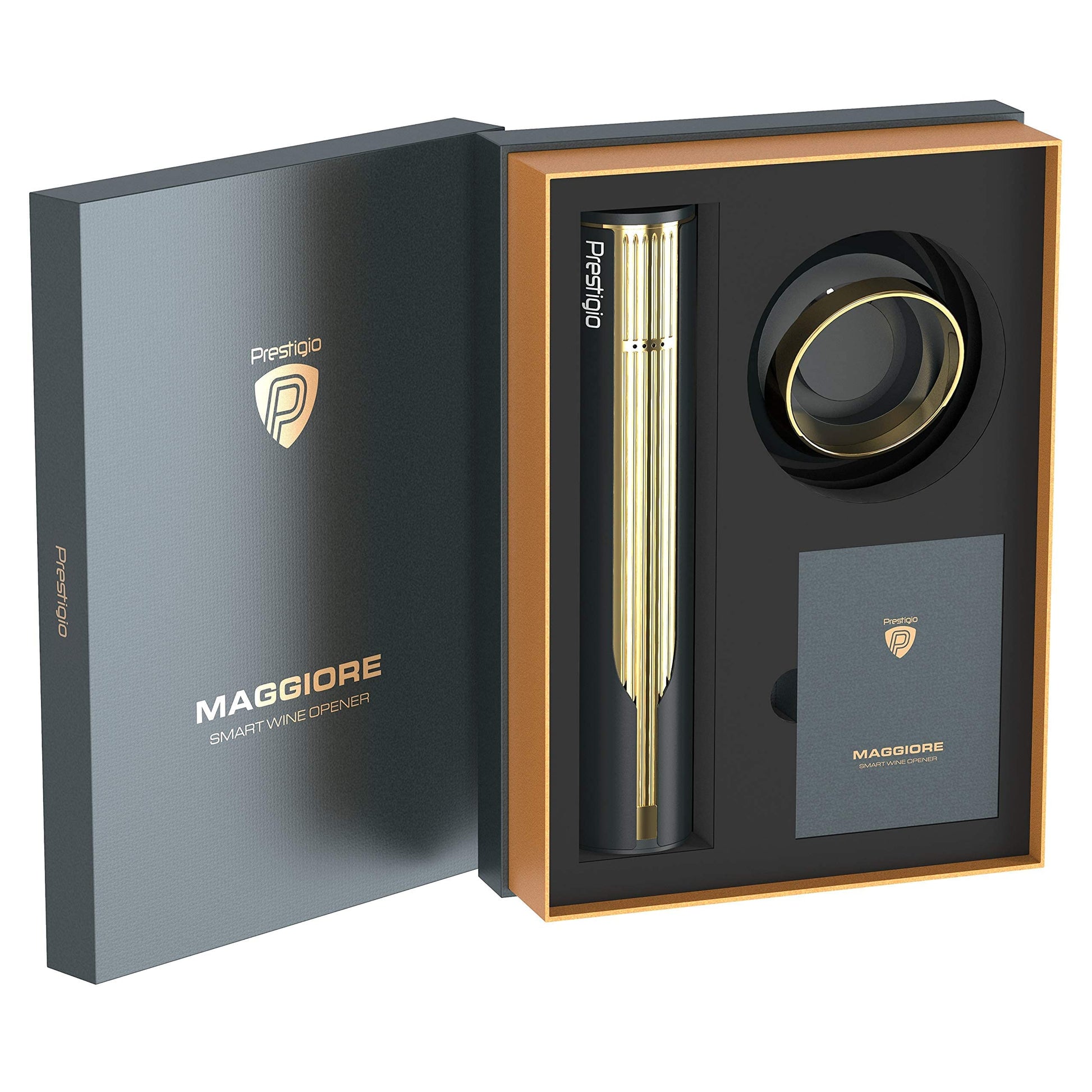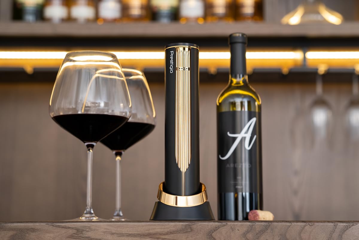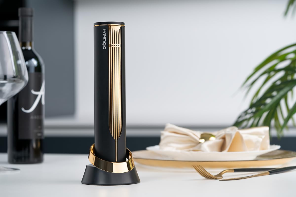 Prestigio Maggiore Electric Corkscrew - Premium wine bottle opener with charging station - Integrated foil cutter - Packed in high-quality gift box - Black/Gold
