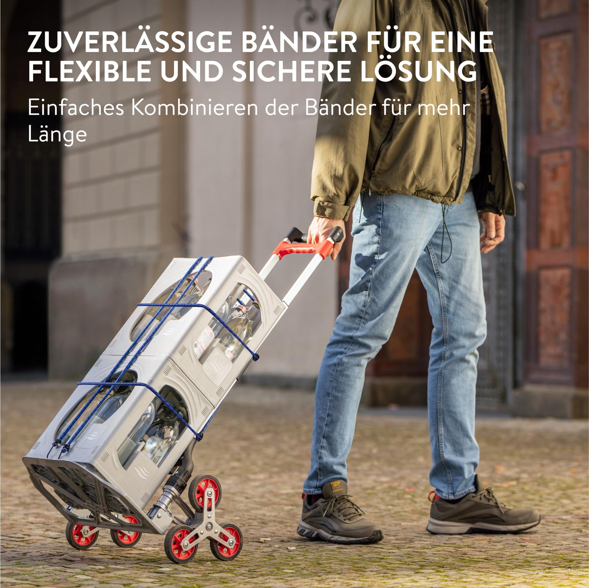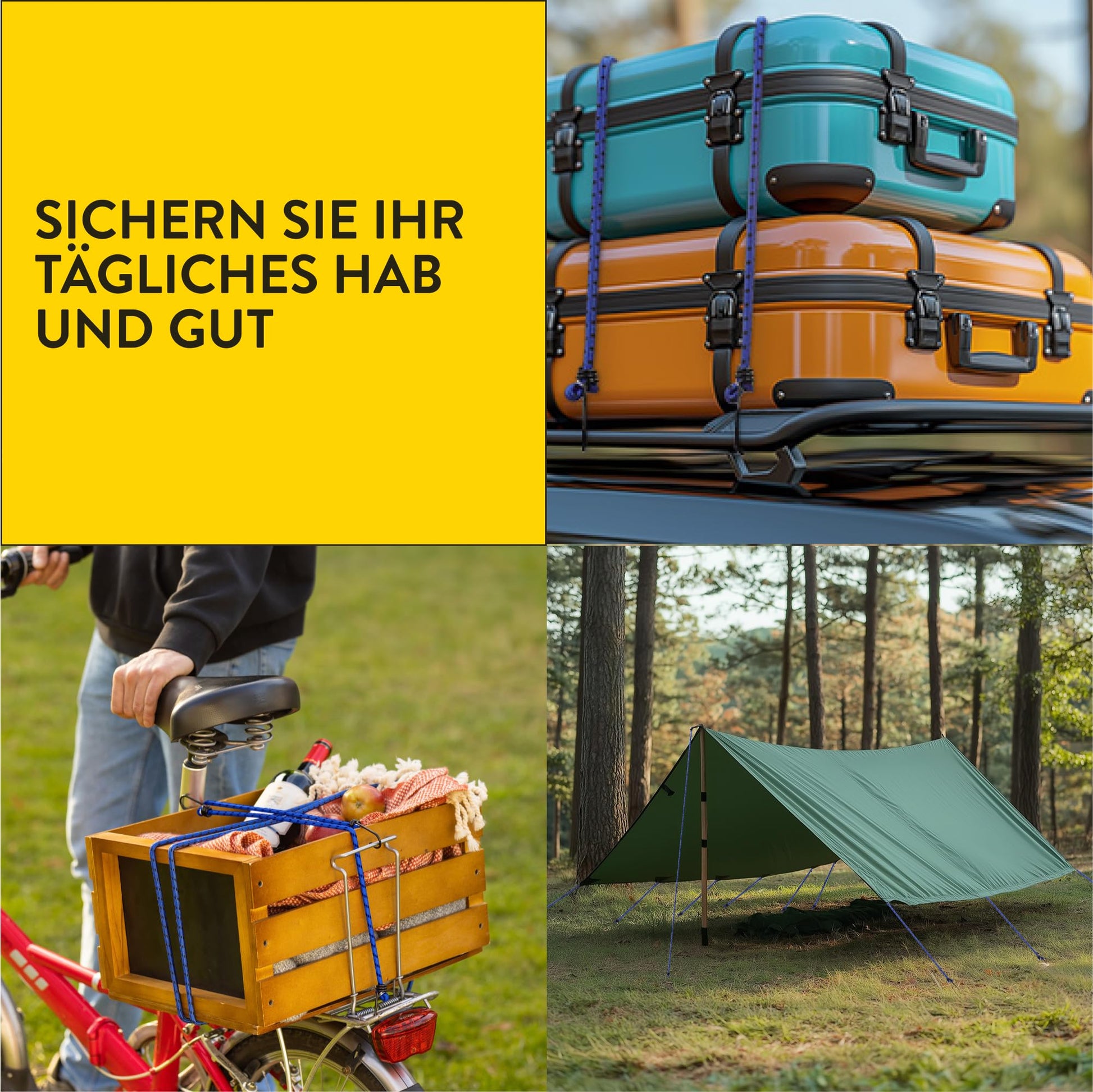 Premium quality: Thanks to the high-quality rubber with fabric coating and the steel hooks, the luggage straps are particularly durable.