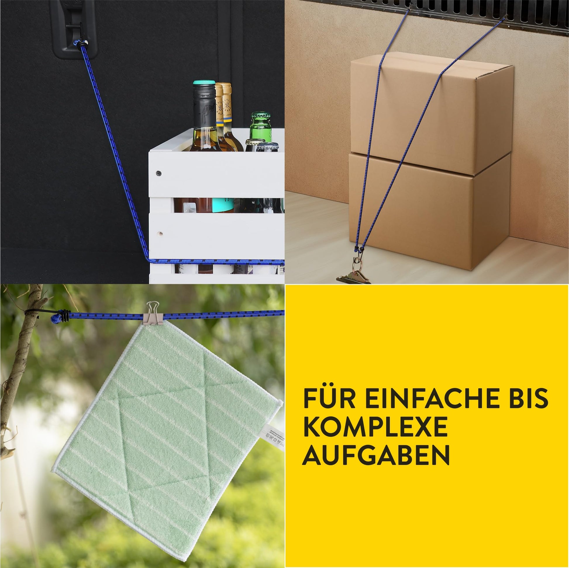 The ultimate elastic cord: Whether on a bicycle, in a car, or for securing loads in a warehouse, these bungee cords ensure secure storage and transport with elastic rubber and hooks.