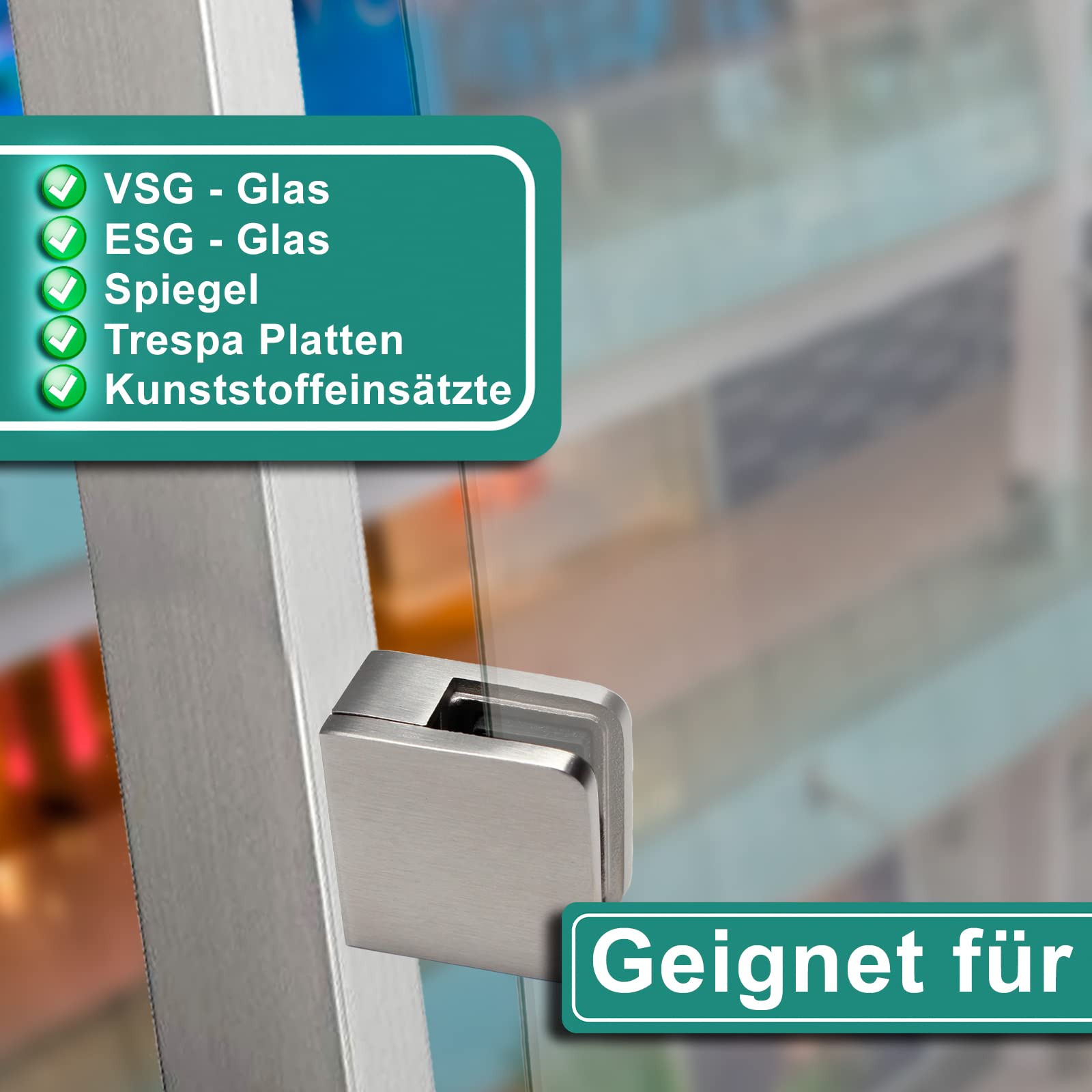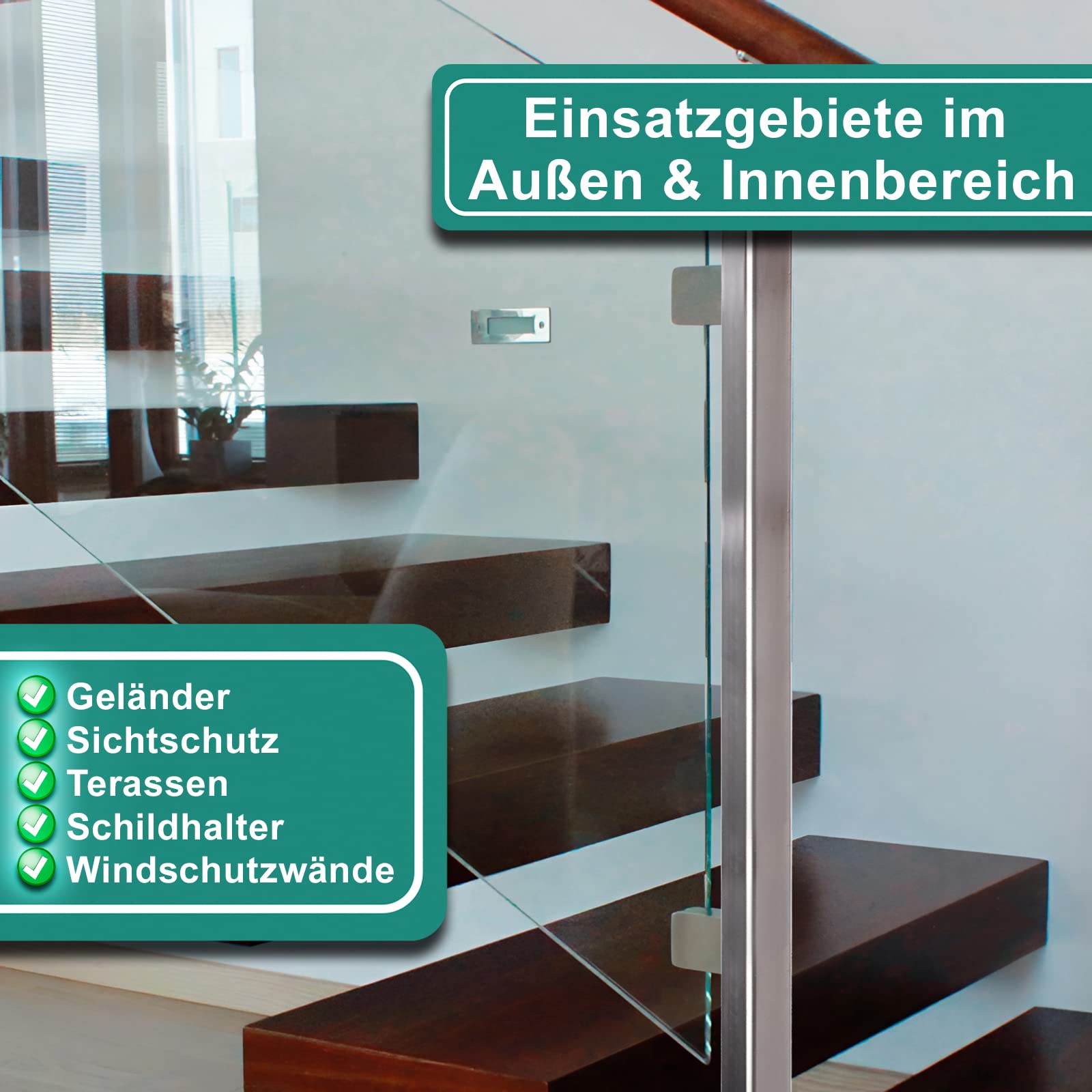 DELIVERY & APPLICATION: The glass holders are supplied with rubber inserts. Our stainless steel glass clamps can be used in indoor & outdoor areas, whether on the balcony, staircase, terrace or on a privacy wall, the glass clamp holders make a good picture! The holders can be used for laminated tempered safety glass, toughened glass, plywood or plexiglass.
