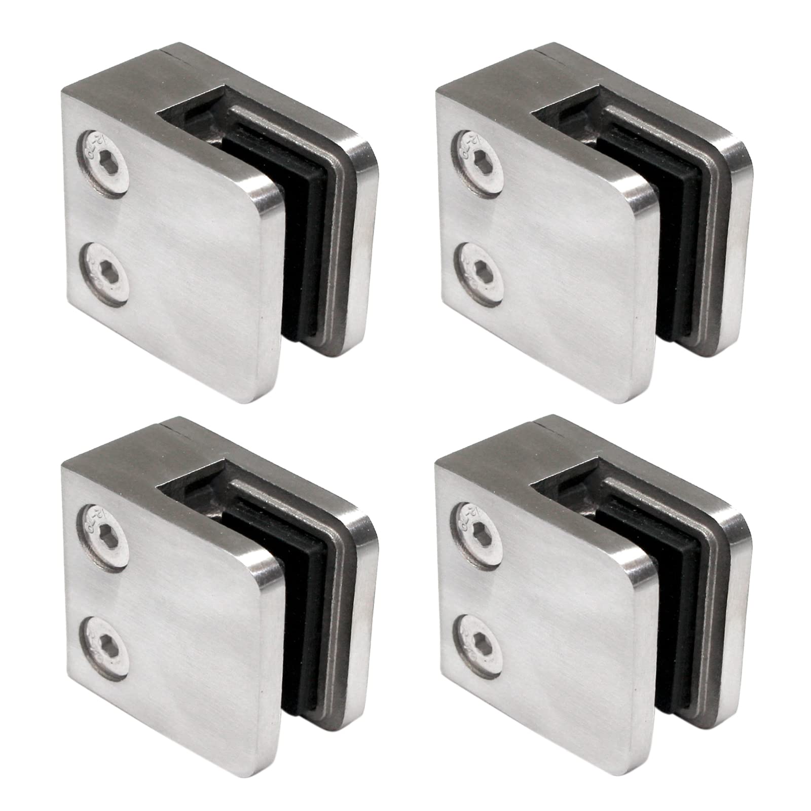 "PRODUCT DATA: 4 pieces x Glass Clamps 1.77" x 1.77" x 1.02", Glass thickness 0.27", Connection: Flat, Ground Grain 240, Stainless Steel V2A for glass railing for balcony railing staircase railing outside or inside or terraces as privacy screens or fall protection. The right clamp attachment for acrylic glass or safety glass laminated tempered safety glass. For stainless steel posts 1.67". The brackets are made of solid polished stainless steel, not just visually! Brand product from PRIOstahl!