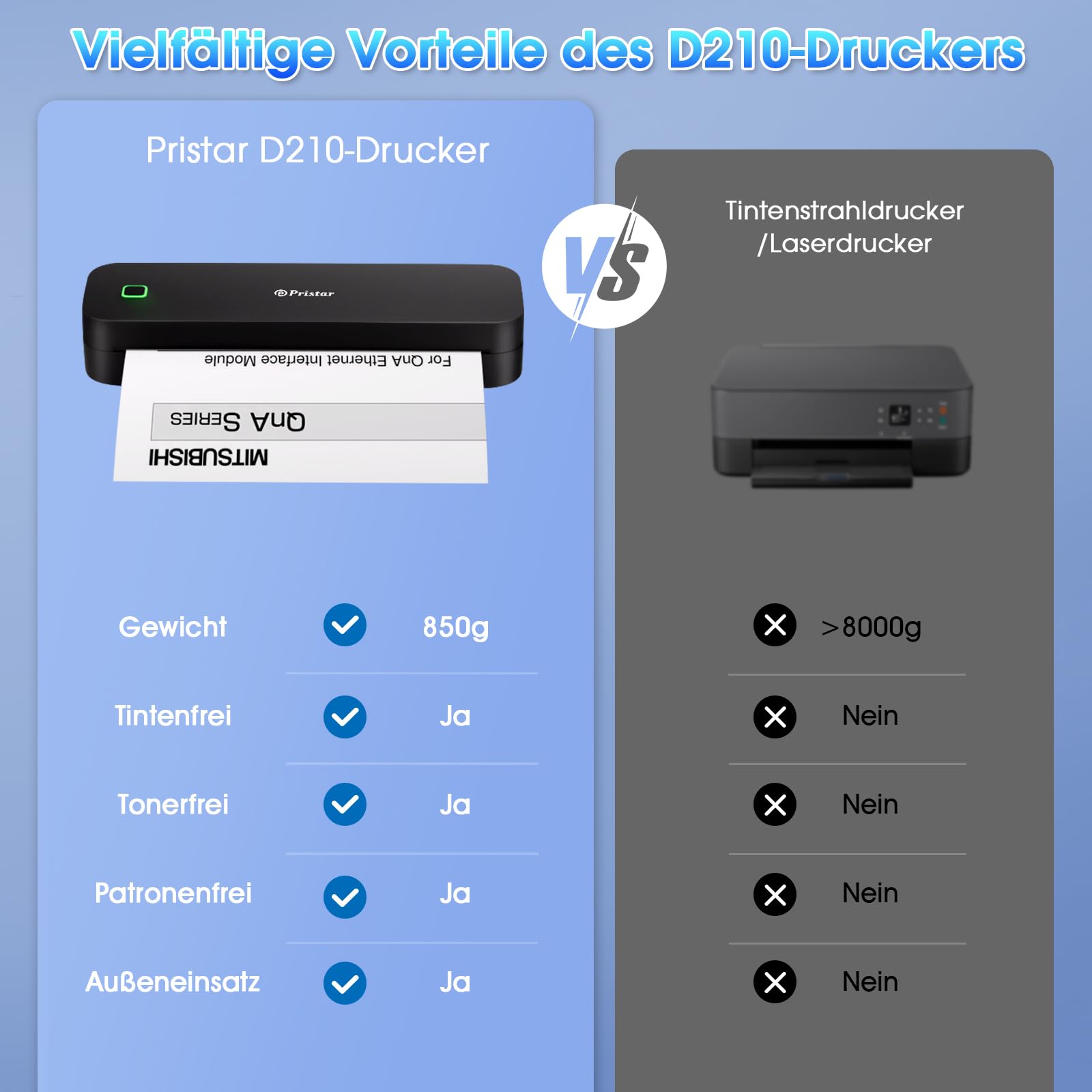 Pristar D210 thermal printer A4, portable printer compatible with iOS/Android and laptops, mobile printer A4 for on the go, office, car, school, home, Bluetooth thermal printer tattoo, black